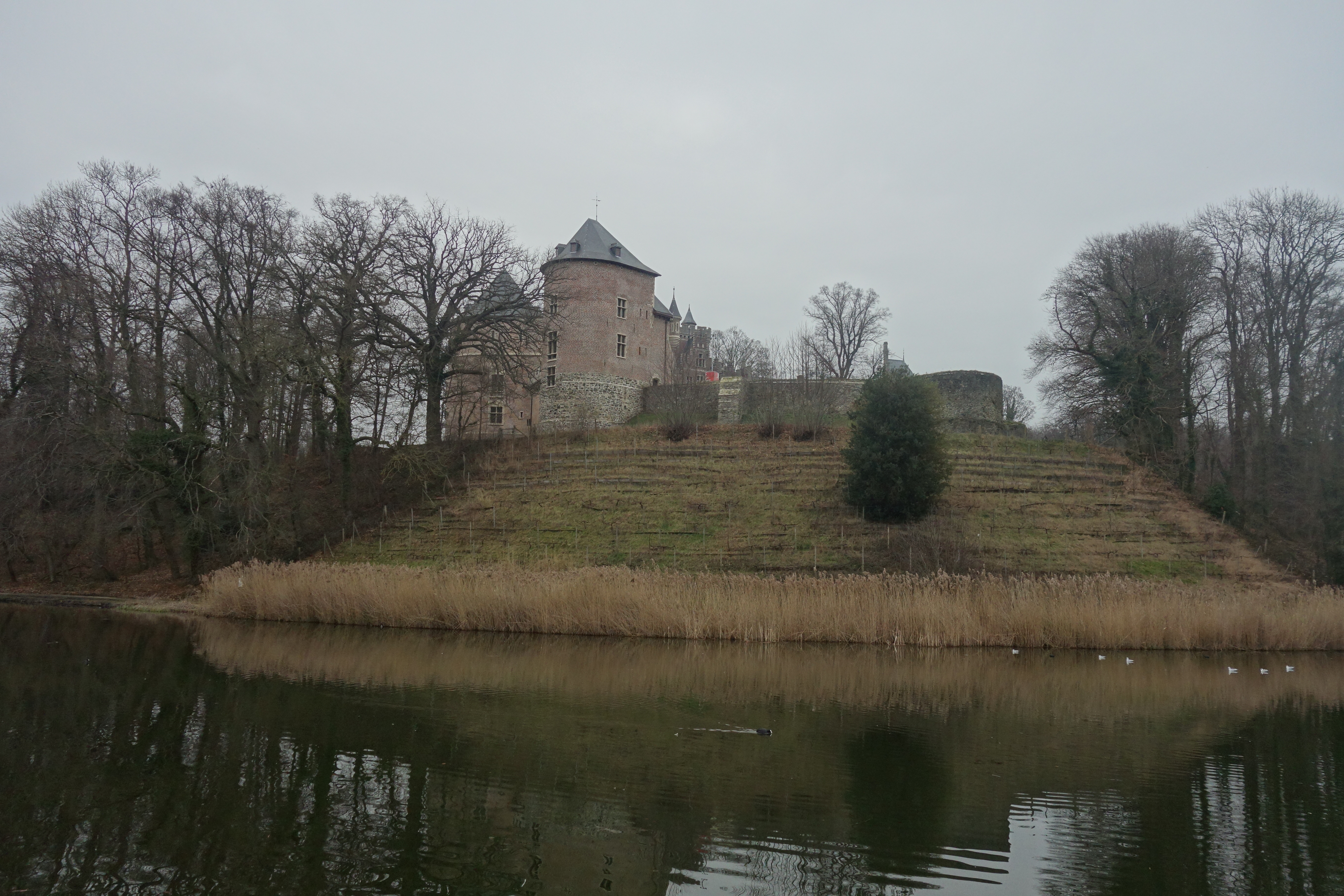 Van het dorpsplein van Gaasbeek ging het richting het kasteel. Hier werd echter enkel de rand van het park gevolgd. We zagen dus wel het kasteel van z’n meest spectaculaire kant, langs het water met de bescheiden terrassen, maar de kapel of de voorkant van het kasteel werd niet bezocht. Er werd doorgestoken richting onze volgende bestemmingen, de dorpjes Sint-Laureins-Berchem en Oudenaken.