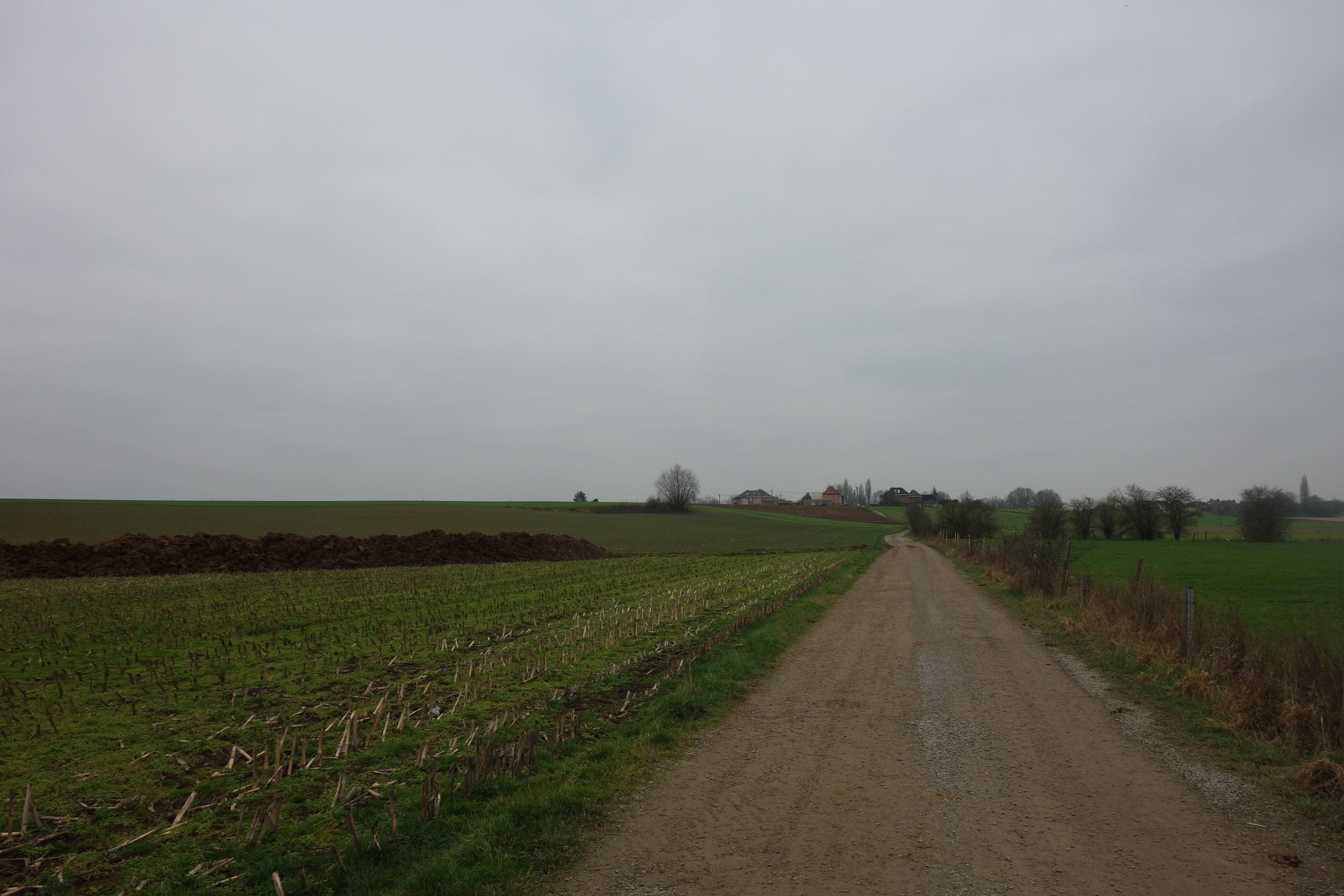 Tijdens onze rit naar het startpunt waren we al te weten gekomen dat ook de wandelvereniging van het Pepingse Bellingen vandaag een wandeldag organiseerde. Deelnemers konden kiezen tussen wandelroutes gaande van 7 tot 50 km. Deze volgde vaak ook onze GR, waardoor we tussen Gaasbeek en Sint-Pieters-Leeuw geregeld tussen een opvallend aantal medewandelaars liepen. Het was enerzijds verbazend maar anderzijds ook fijn om te zien hoeveel mensen op de grauwe februaridag kozen om toch naar buiten te gaan.