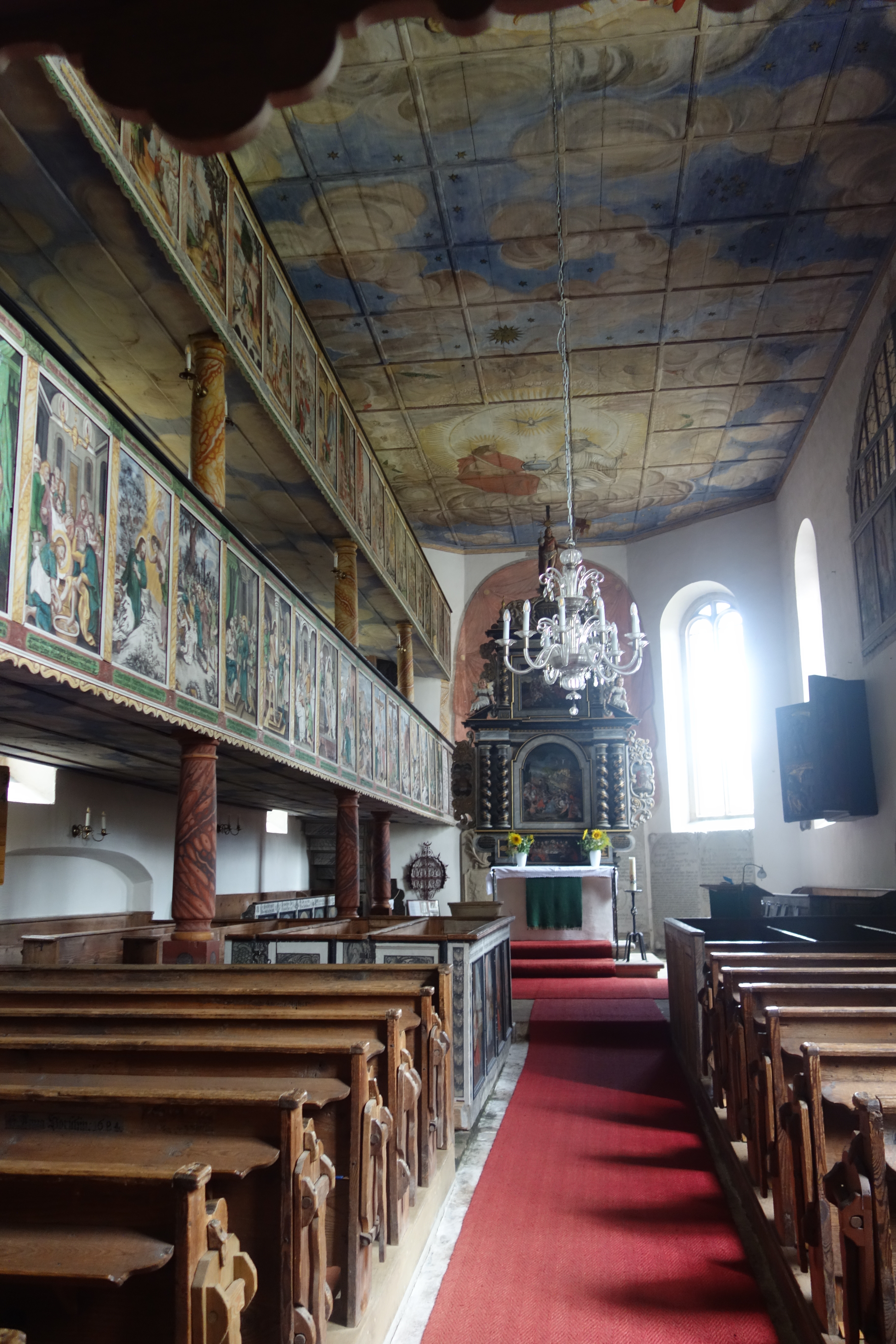 We besloten dan maar eventjes onderdak te zoeken in de Lutherse Kerk, die gelukkig open was. Deze was ook prachtig versierd, met nog heel wat authentieke delen uit de 16de en 17de eeuw. En ons verblijf had er schijnbaar voor gezorgd dat het onweer was gaan liggen. Uit dankbaarheid besloten we een kleine donatie te geven.