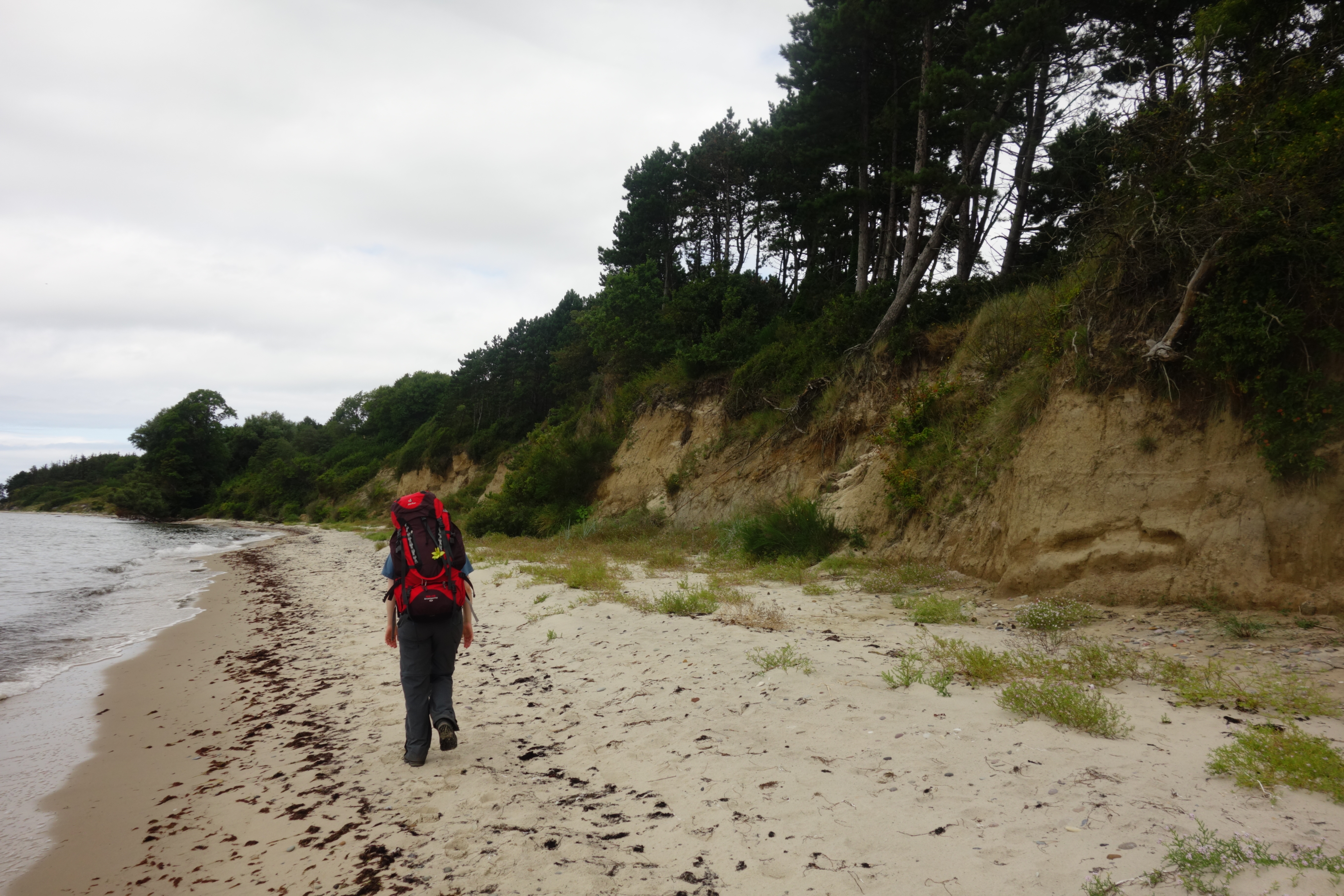 Na een proteïnebar besloten we door te wandelen tot Arnager. De route was gelukkig iets milder, met ook wat stukken op gras- en fietspad. De meeste hoogtemeters leken gemalen. Kort voor het dorpje was er nog een passage op het strand. In Arnager nuttigden we onze resterende lunch, al was het inmiddels half drie. Een beginnersfout.