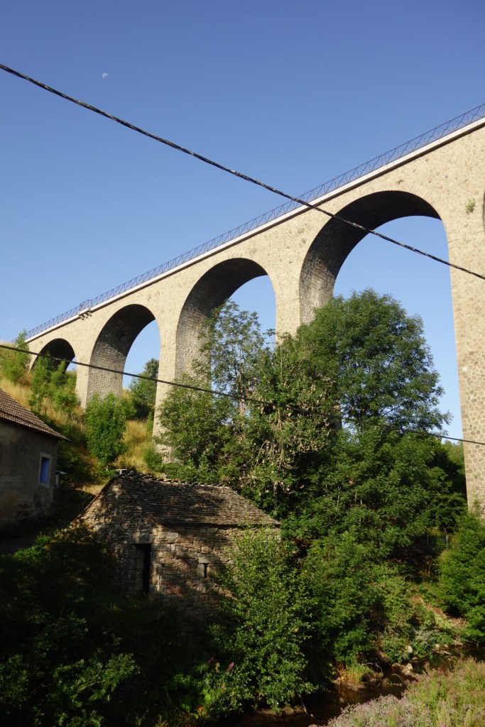 Voor we ons aan de gestage klim (en afdaling) richting de Goulet konden zetten, wachtte er nog een ander hoogtepunt van de GR 70 op ons. Eerder zagen we al een spoorwegviaduct in Arquejol, maar deze van Mirandol is pas echt indrukwekkend. Al na een paar honderd meter nadat we Chasseradès verlieten, zagen we het impressionante bouwwerk tevoorschijn komen. Meer dan 120 meter lang en 30 meter hoog doorkruist het kleine dorpje met z’n kronkelende, dalende straten.