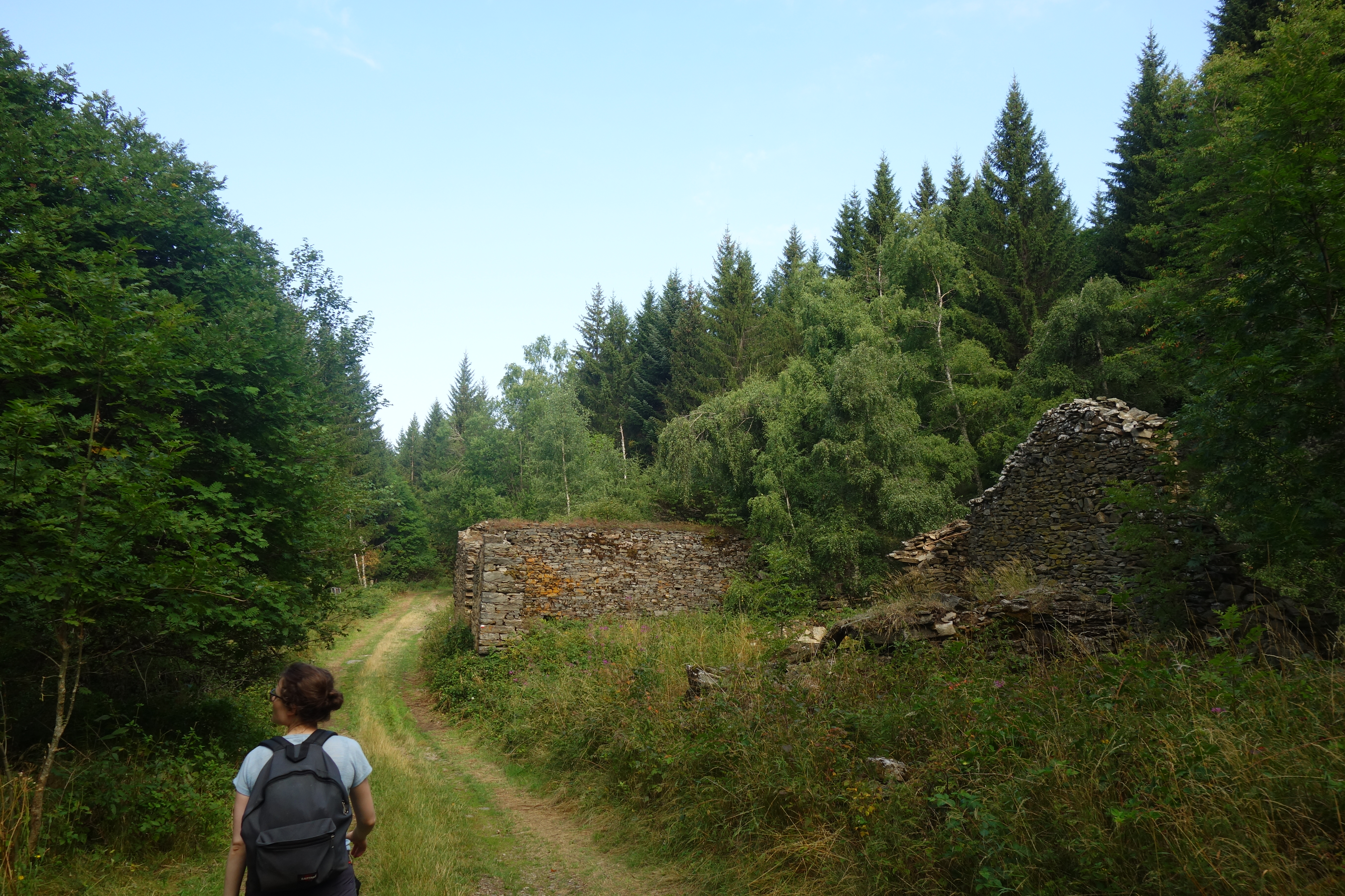 Op deze dag was er, na het ontbijt, nagenoeg niemand meer te bespeuren, op een dorpeling na. Pas bij onze aankomst in Les Alpiers en Le Bleymard zagen we opnieuw medemensen. Dit was ook het geval in het bos dat we in de volgende passage moesten doorkruisen. Het was er zelfs zo kalm dat we een letterlijk spookdorp bezochten. Serreméjan was ooit een klein gehucht, maar door de veranderende economische activiteit waren dit soort afgelegen, rudimentaire verzamelingen huizen ten dode opgeschreven. De depopulatie in deze regio is wel degelijk een probleem, maar ik heb een klein vermoeden dat de voormalige en laatste inwoners van Serreméjan een punt hadden.