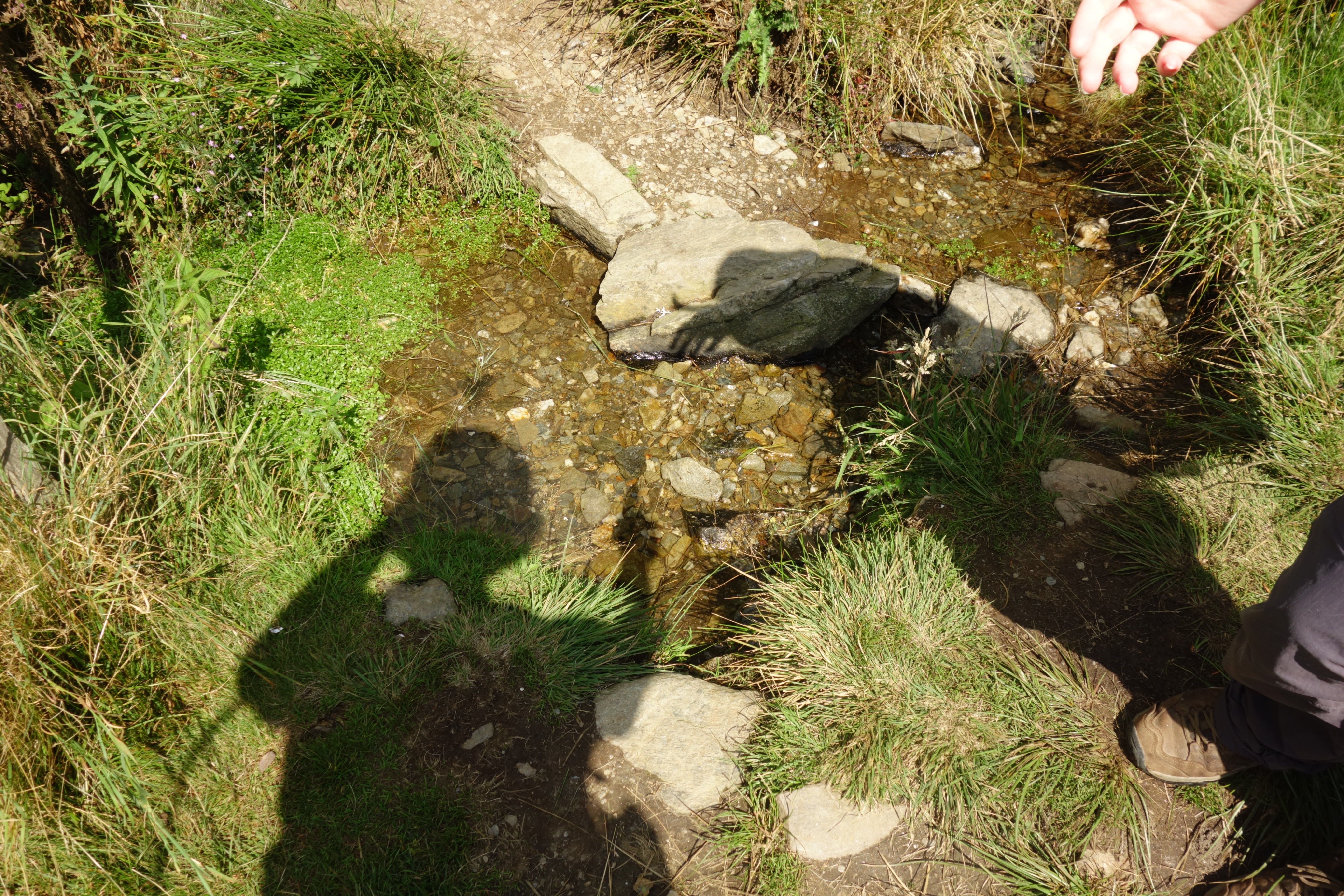 Het bos had nog een laatste verrassing. Terwijl het landschap zich meer en meer begon bloot te geven, was er nog een kleine zij-uitstap naar de bron van de Lot. De Lot stroomt 489 km, waarna het in Aiguillon in de Garonne stroomt. Hier is het echter een klein plasje, dat later, in Les Alpiers al ietsje uitgebreider zal overgestoken worden. De jonge Lot vergezelde ons op weg naar het gelijknamige dorpje, terwijl de bergen van de Lozère dichter en dichter kwamen.