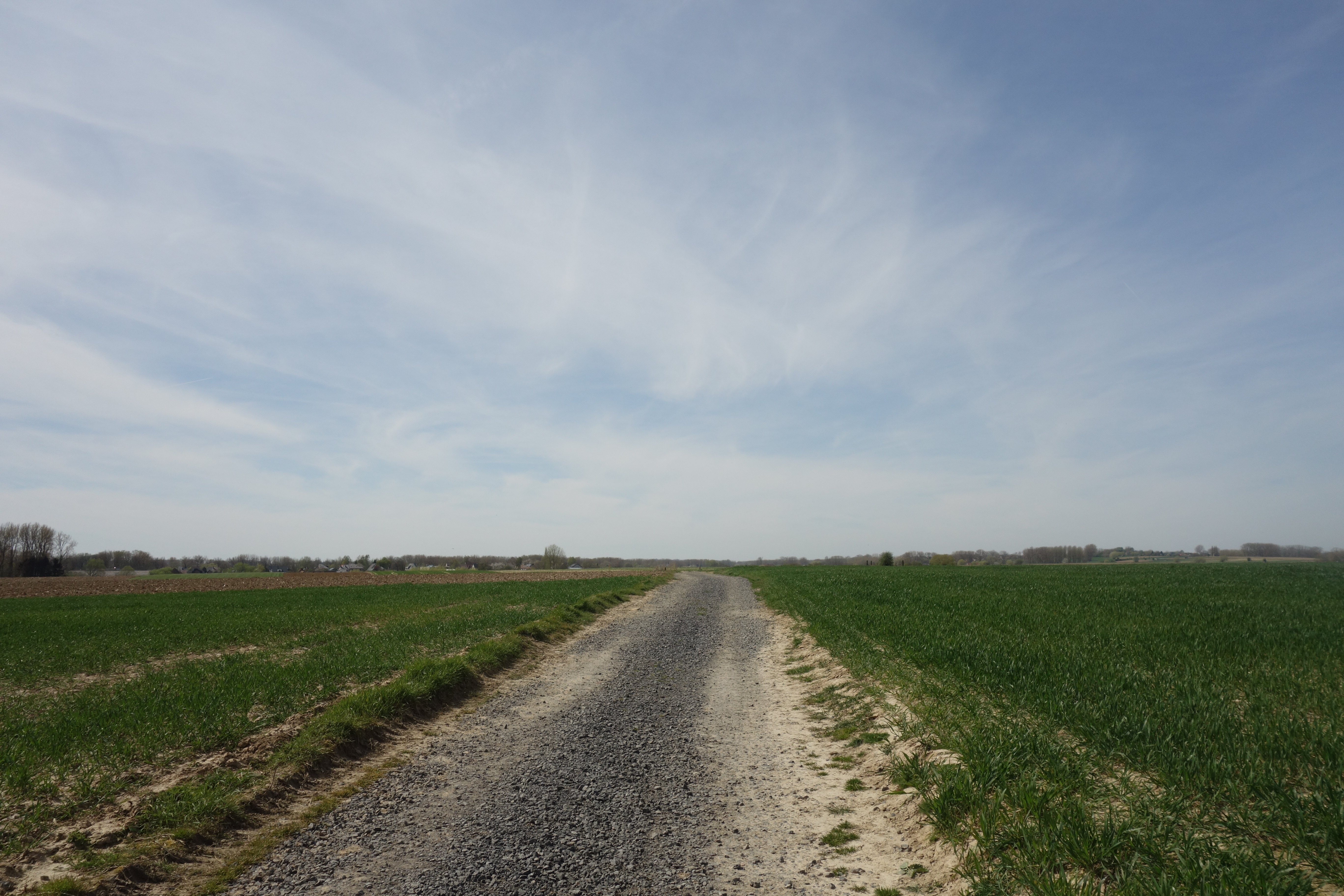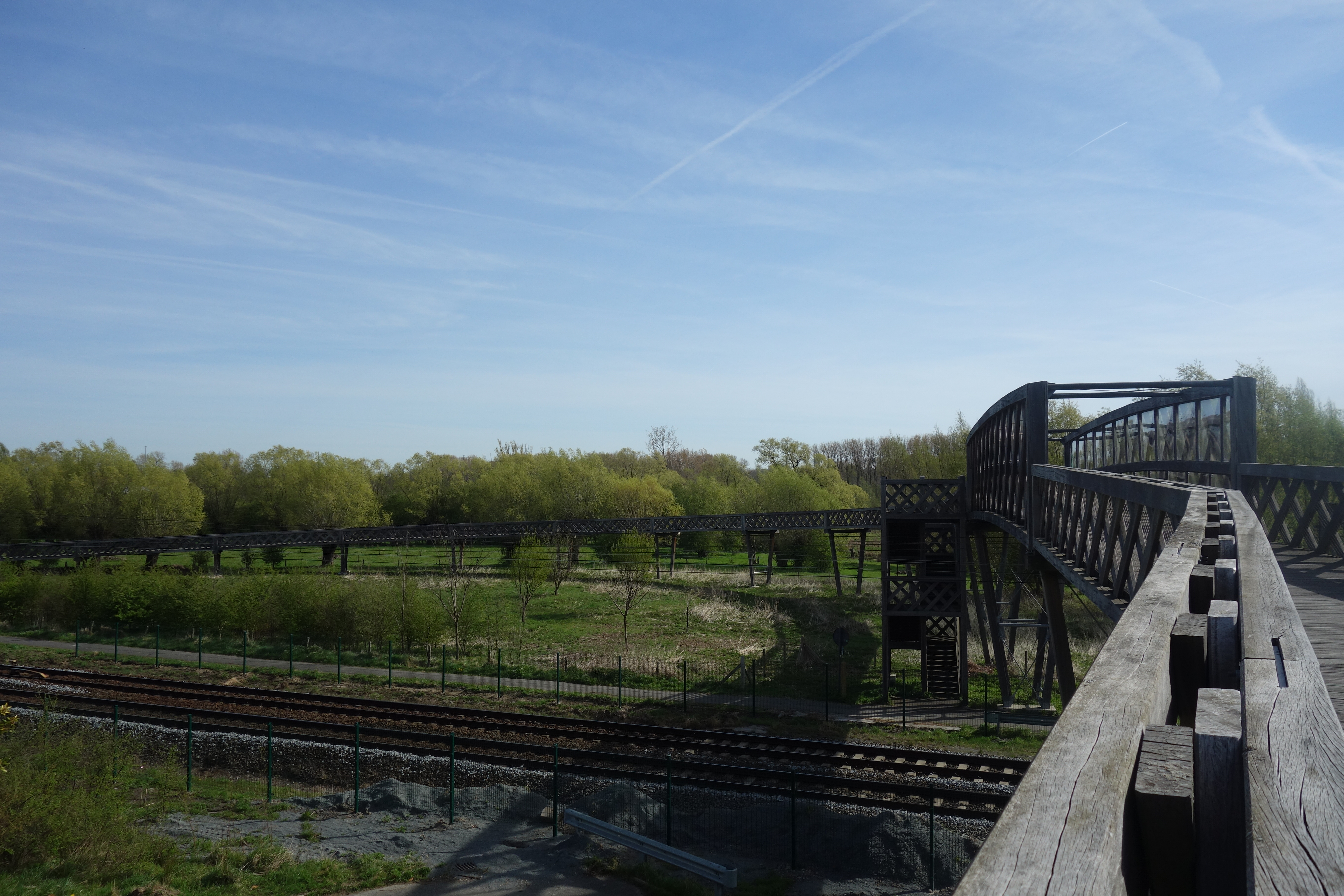 Bij de start volgden we een fietssnelweg (tussen Gent en Mechelen) en passeerden we langs de nieuwe gevangenis van Dendermonde, waar een vrouw net iets onverstaanbaars door de luidsprekers zei. En dan ging het opnieuw mis. Dit stuk van de GR 128 loopt parallel met een deel van de GR5 A, dat ik al eerder wandelde in 2021. Aan de spoorweg zagen we aan onze linkerkant de Rood-witte GR-kleuren en gingen ervan uit dat we dan ook die weg moesten nemen.