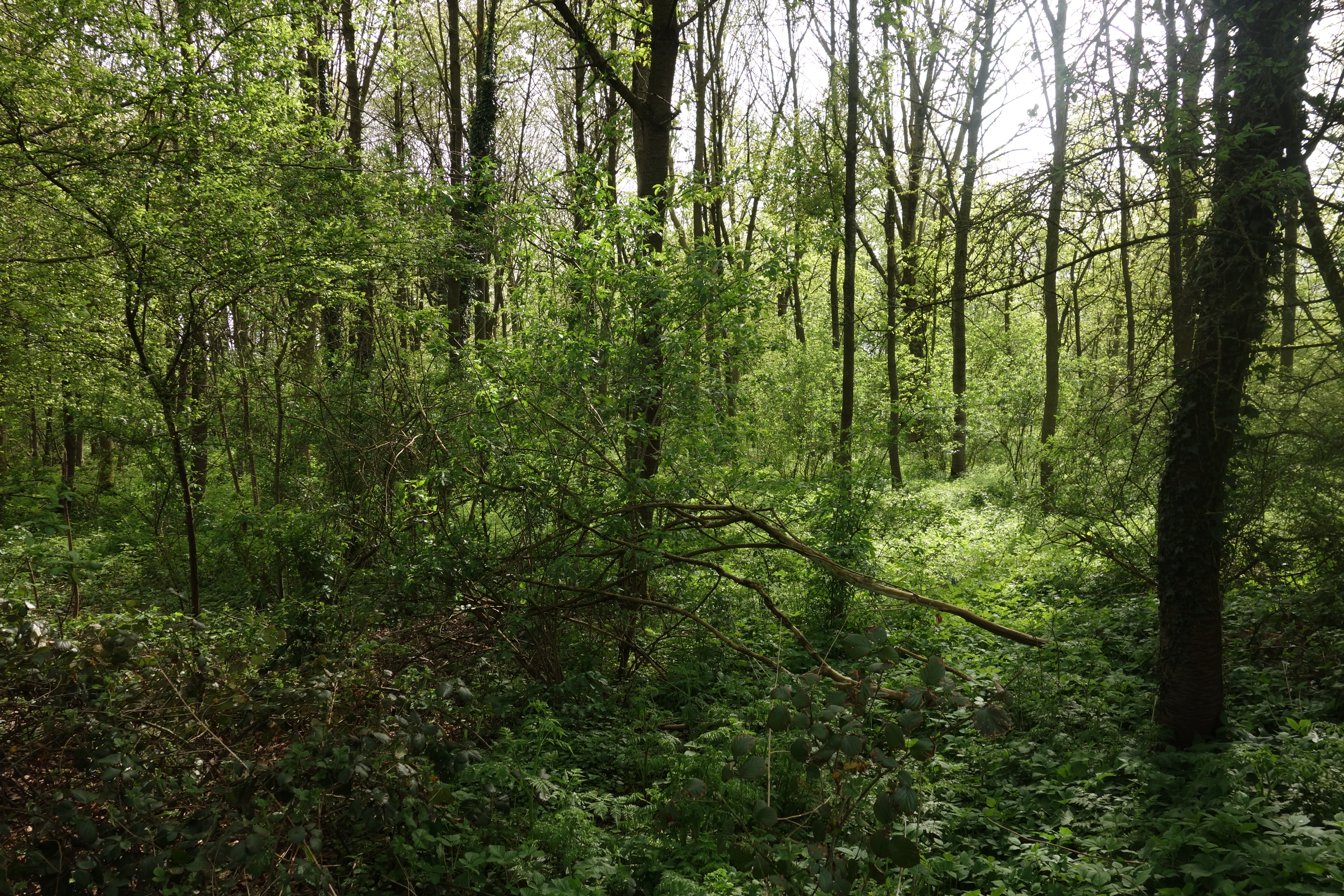 Het tweede deel begon met een rare doorsteek door een plek met wat beperkte industrie, maar gelukkig ging het snel opnieuw de juiste richting uit. De vermoeidheid begon wel wat parten te spelen. Het mislopen van een bankje, door vier wandelgrage jongelingen, deed ons noodgedwongen uitwijken naar de bakstenen muur van een bruggetje.