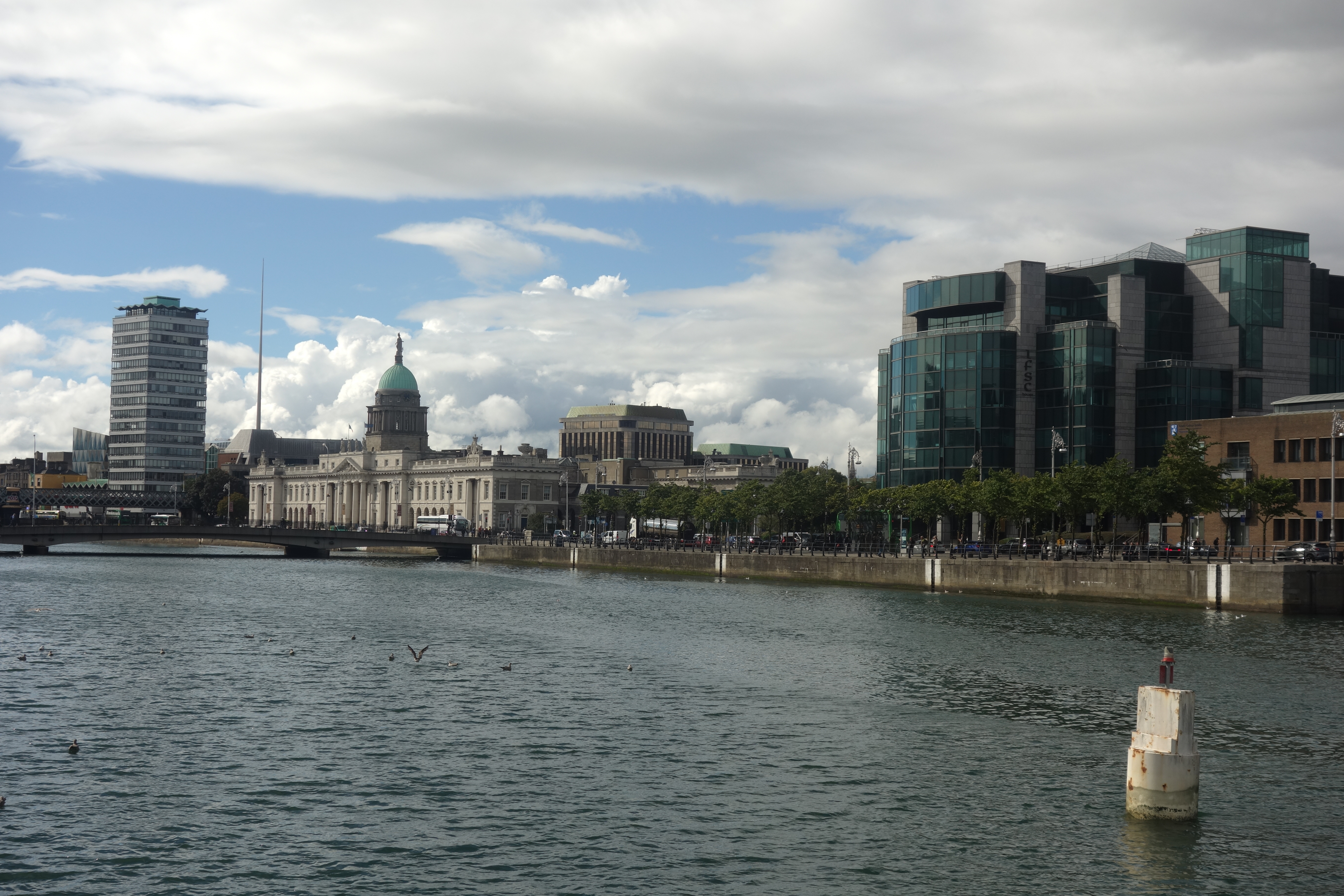 Na ons bezoek gingen we nog langs bij twee helden. Bij Oscar Wilde was het gezellig druk, met heel wat Aziatische toeristen die bij het standbeeld poseerden. Bij James Joyce was het een gezette vrouw die het voetstuk als zitplaats gebruikte (bellend en haar kind negerend) en daarna een dakloze vrouw met een oog. Maar uiteindelijk lukte the portrait of a 35-year old man with the artist’s statue dan toch. Onze Premier Inn was gelegen in het bruisende Temple Bar. Zeer bruisend. We besloten dan ook om voor de standaard hamburgerhap te gaan.