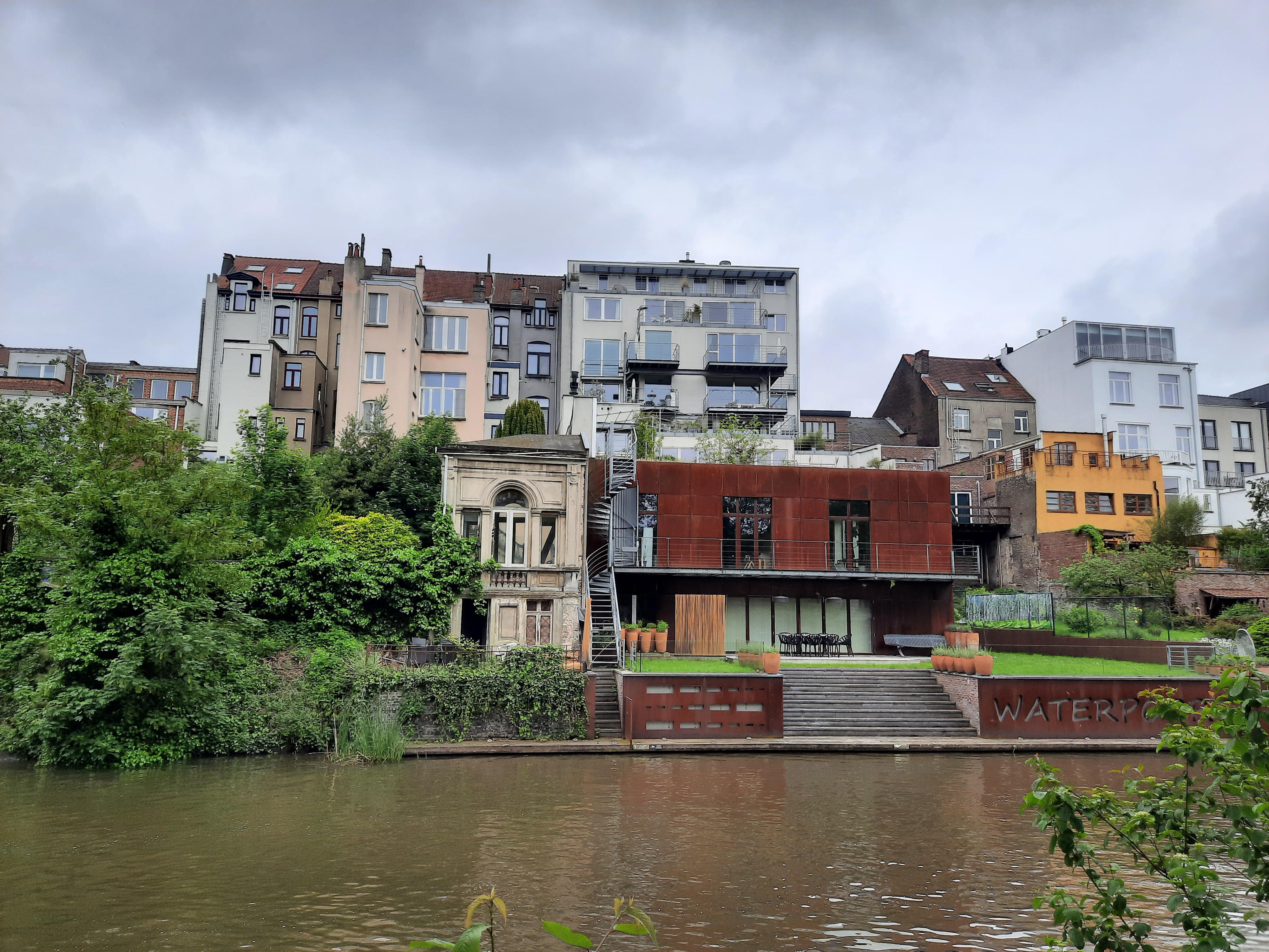 De doortocht door het centrum van Gent duurt niet te lang en dat betekent ook een afscheid van de Leie. Die vloeit namelijk in de Schelde in de Porta Ganda, de nieuwe jachthaven waarvan de naam wat blitser is dan de plek zelf. Hier is het Zwembad Van Eyck, dat in de gids werd aangekondigd als een Art Deco gebouw. Ook dat was eventjes verwarrend, aangezien je eerst de moderne aanbouw ziet. Het gebouw zelf is helaas ook niet meteen het meest indrukwekkend.