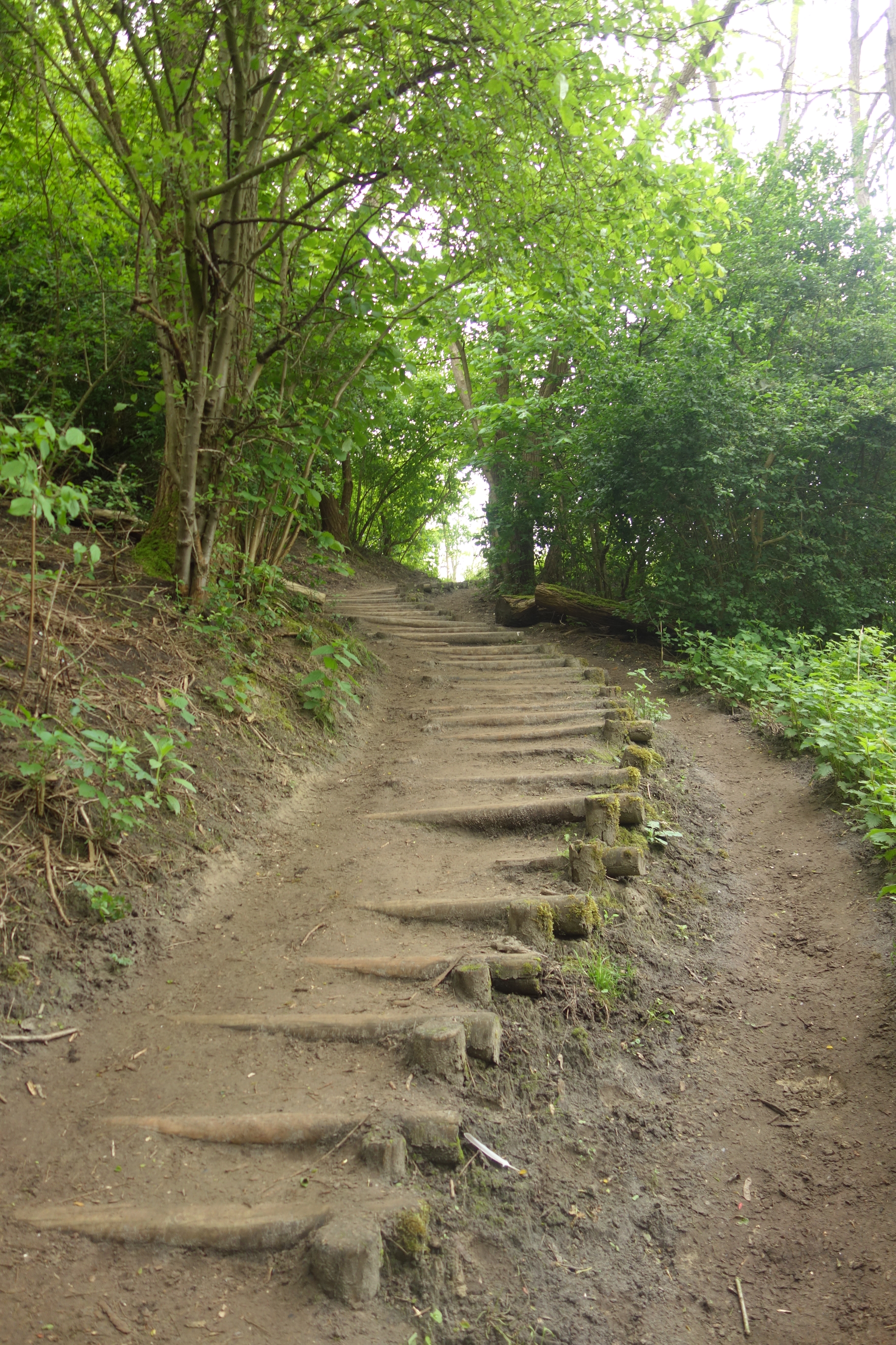 Het tweede deel begon met een rare doorsteek door een plek met wat beperkte industrie, maar gelukkig ging het snel opnieuw de juiste richting uit. De vermoeidheid begon wel wat parten te spelen. Het mislopen van een bankje, door vier wandelgrage jongelingen, deed ons noodgedwongen uitwijken naar de bakstenen muur van een bruggetje.