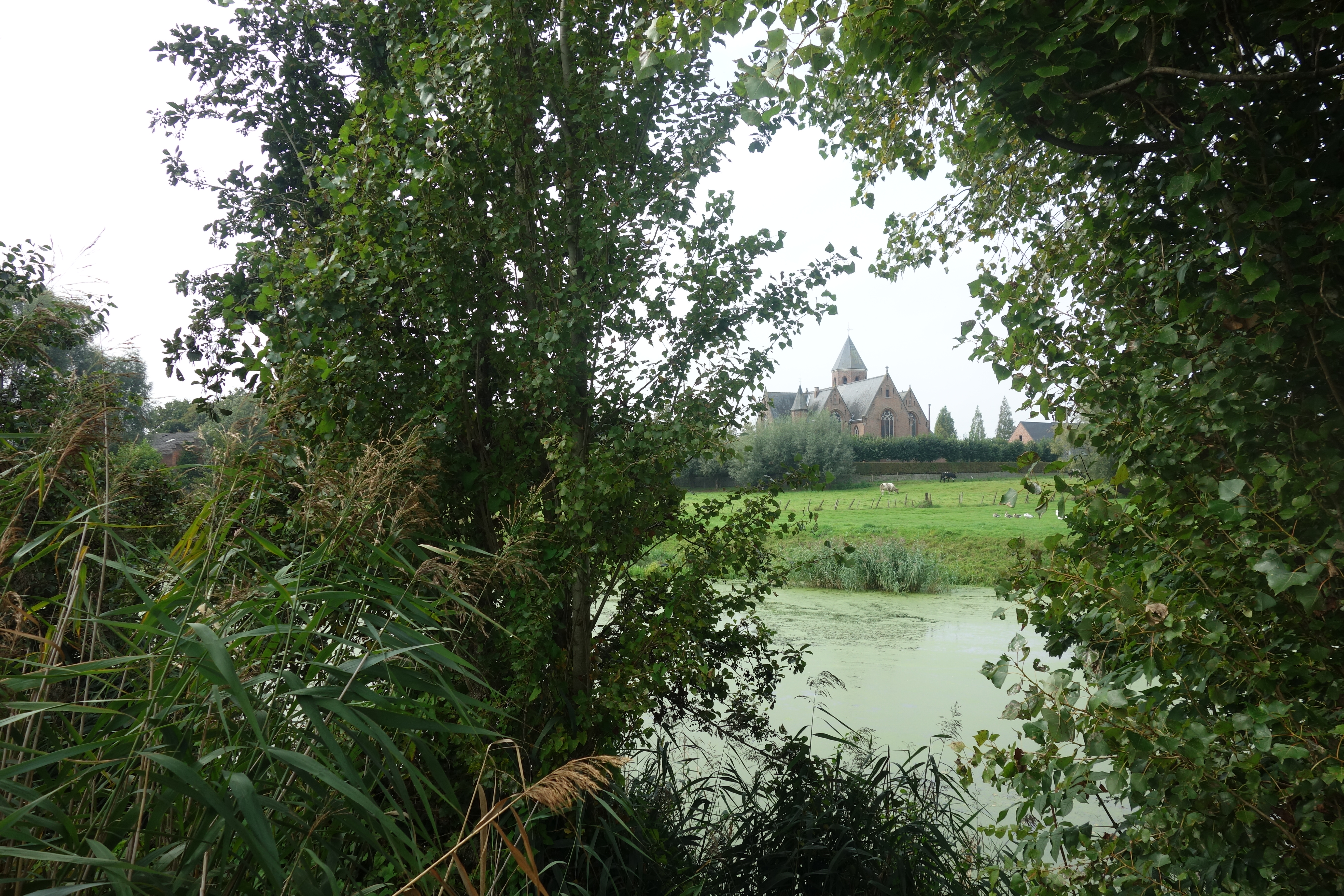Op dit stuk maken we ook kennis met de Oude Schelde, dat opnieuw werd uitgegraven en zo de kans kreeg om een heel mooi en divers ecosysteem te creëren. En het was, met her en der bomen badend in het water, ook erg esthetisch. Dat ecosysteem is hier echter wat bedreigd, want blijkbaar zitten hier ook Chinese wolhandkrabben, exoten die je niet in je water wil hebben. Ondertussen kwam de kerk van Schellebelle dichter. Waarschijnlijk was het effect van het prachtexemplaar van Wetteren nog te groot, want het was een dikke tegenvaller.