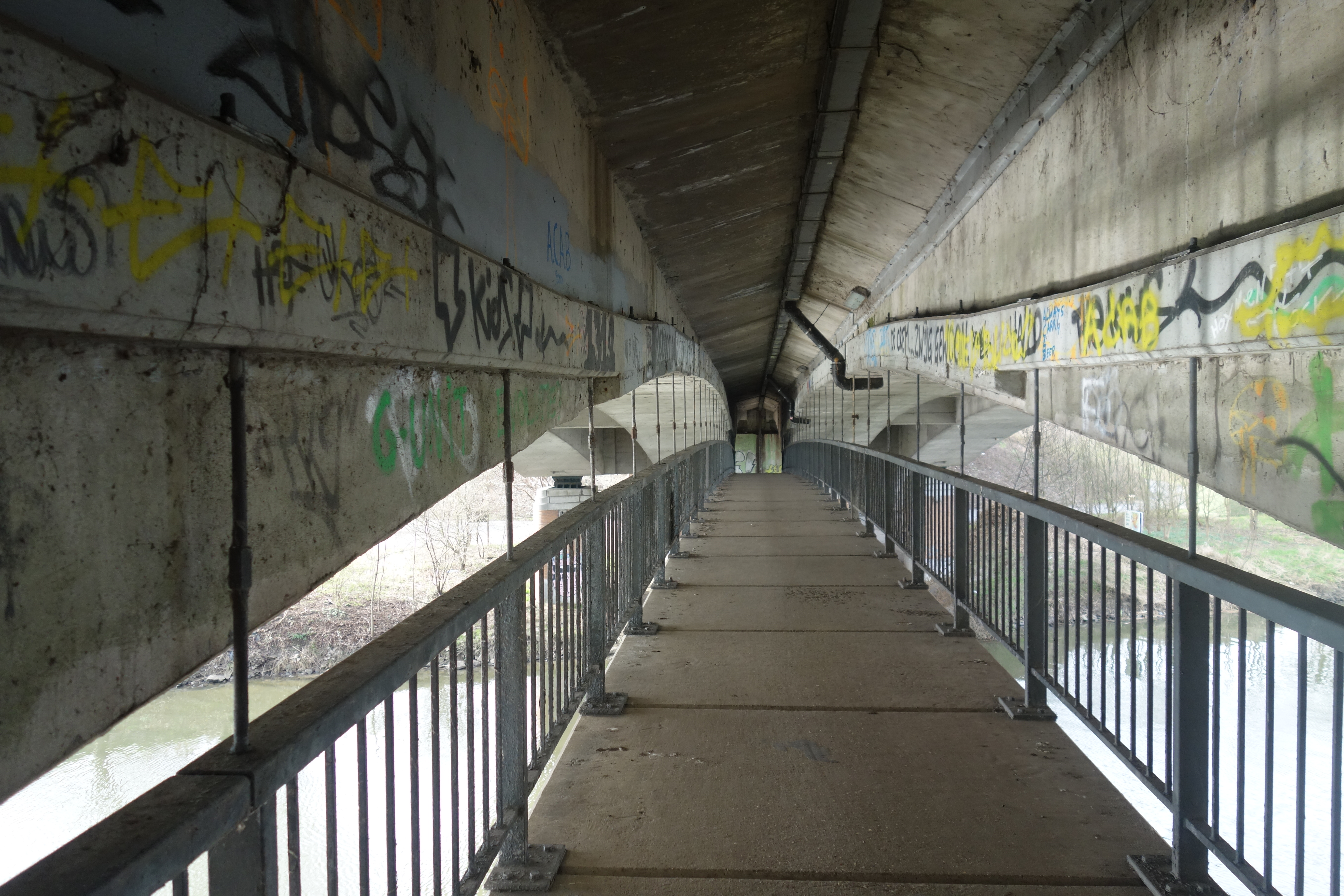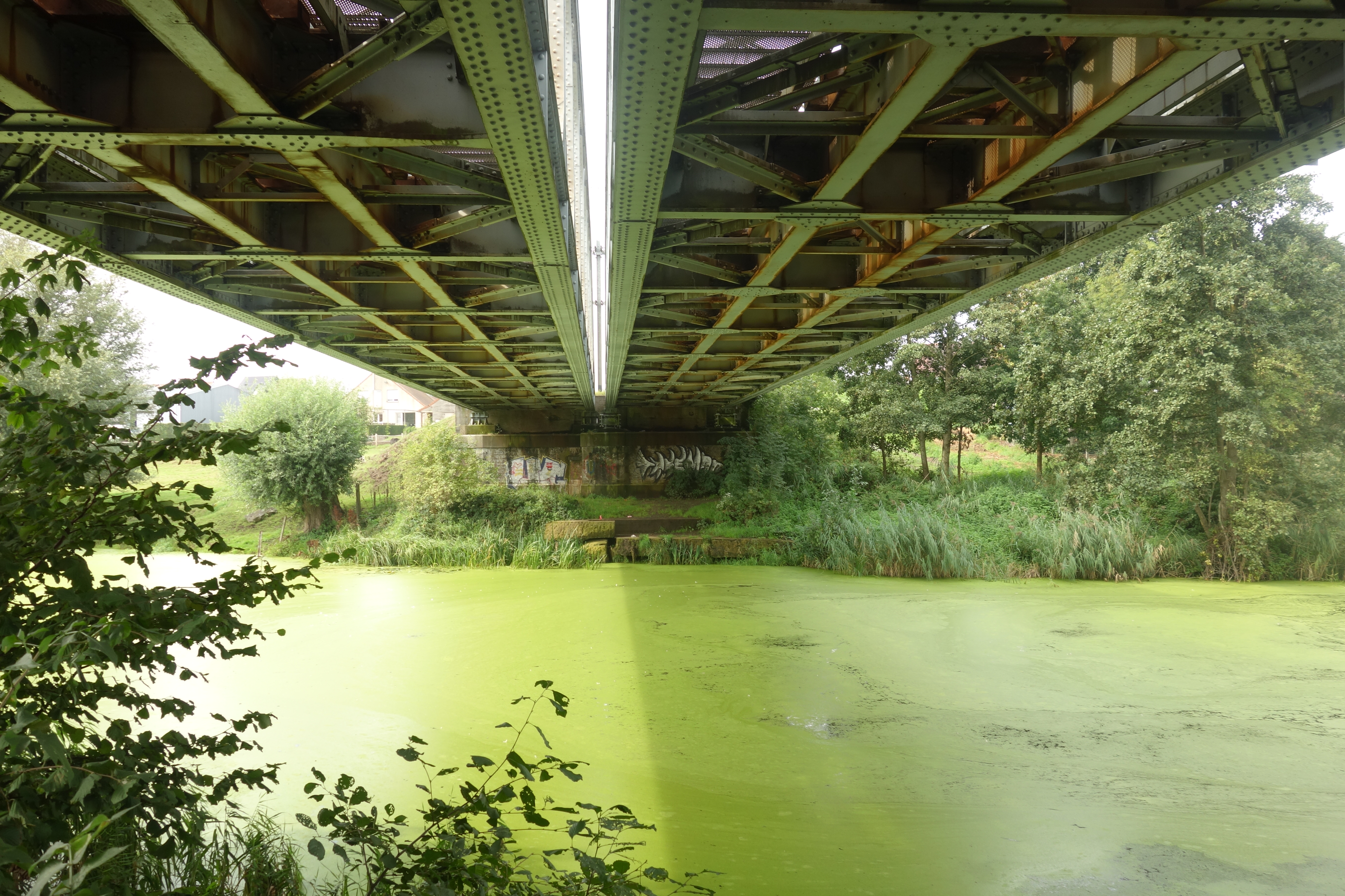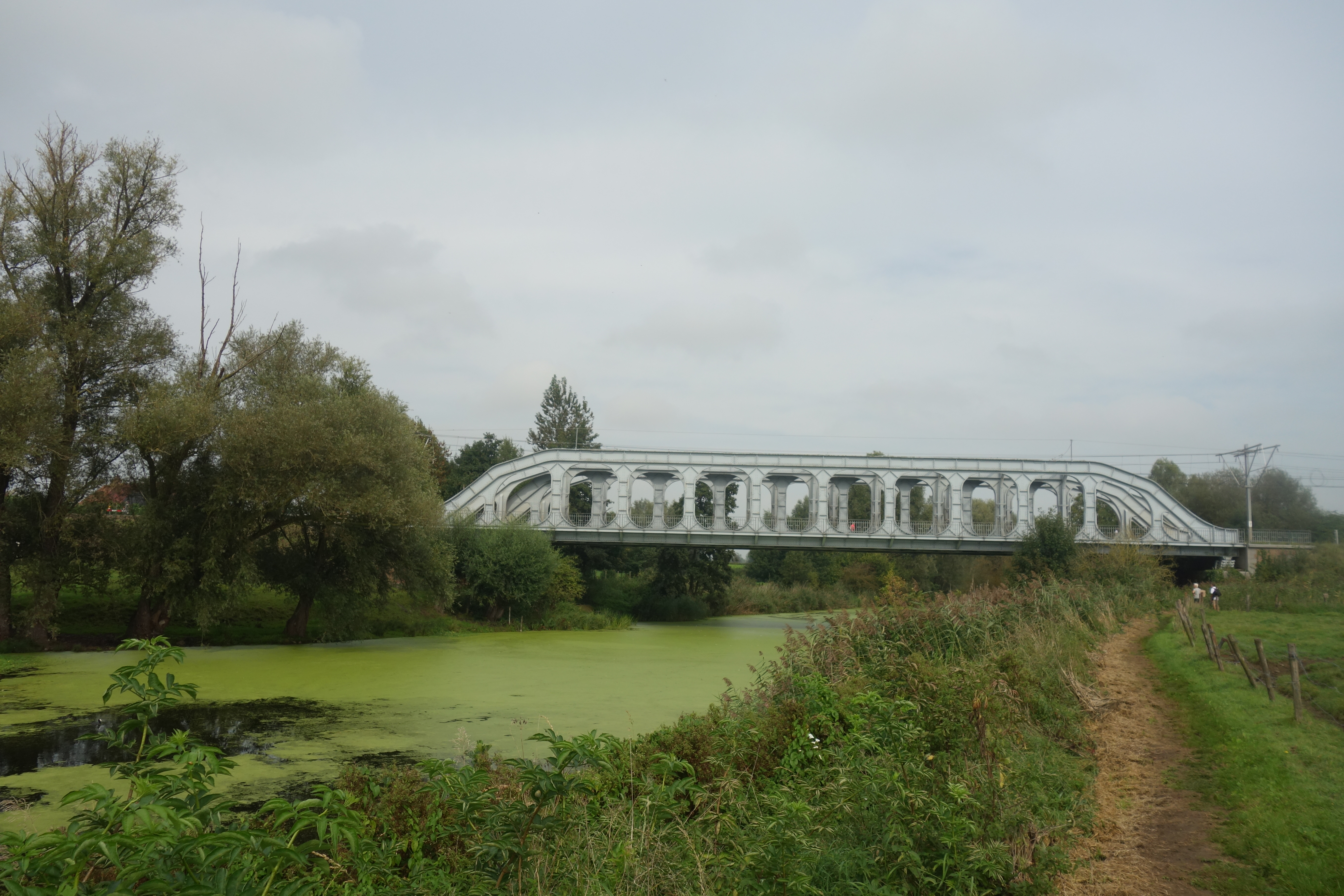 Het tweede deel begon met een rare doorsteek door een plek met wat beperkte industrie, maar gelukkig ging het snel opnieuw de juiste richting uit. De vermoeidheid begon wel wat parten te spelen. Het mislopen van een bankje, door vier wandelgrage jongelingen, deed ons noodgedwongen uitwijken naar de bakstenen muur van een bruggetje.