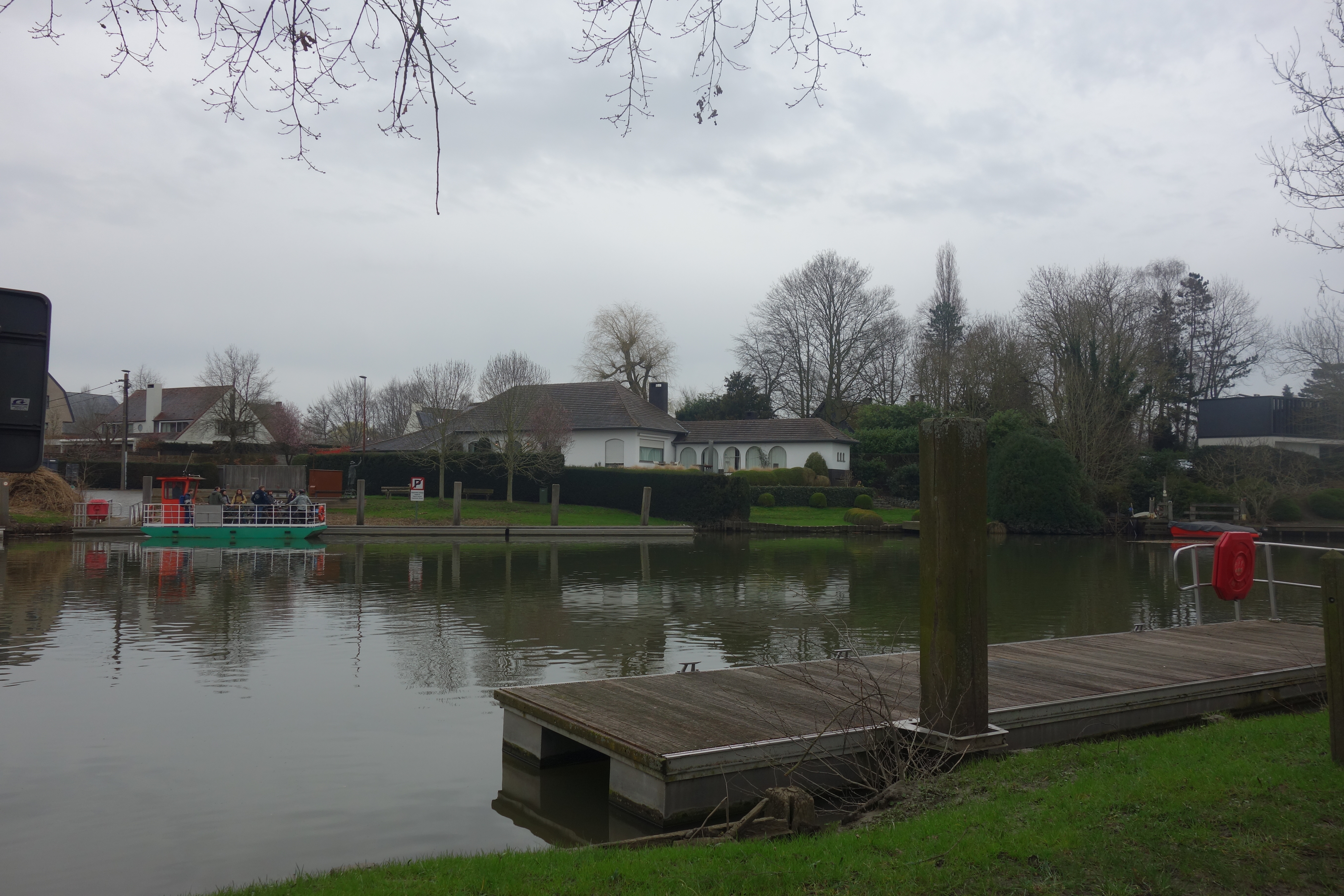 Na een tijdje deze te volgen op een asfaltbaan, gaat het via de bijzondere Goedingebrug naar de andere kant van de Leie. Deze brug gaat onder de E40 en je hoort het dus letterlijk rammelen. De Leie wordt dan nog gevolgd in de natuurlijke setting van de Beelaartmeersen en de Hoge Laak. Ook hier zijn aan de overkant prachtige huize aan de rivier te vinden, met zelfs een mini-jachthaven. Om toch onze trein te halen werd het laatste stuk in Drongen al lopend afgelegd. Een pittig einde van een bijzonder etappe op de GR 128.