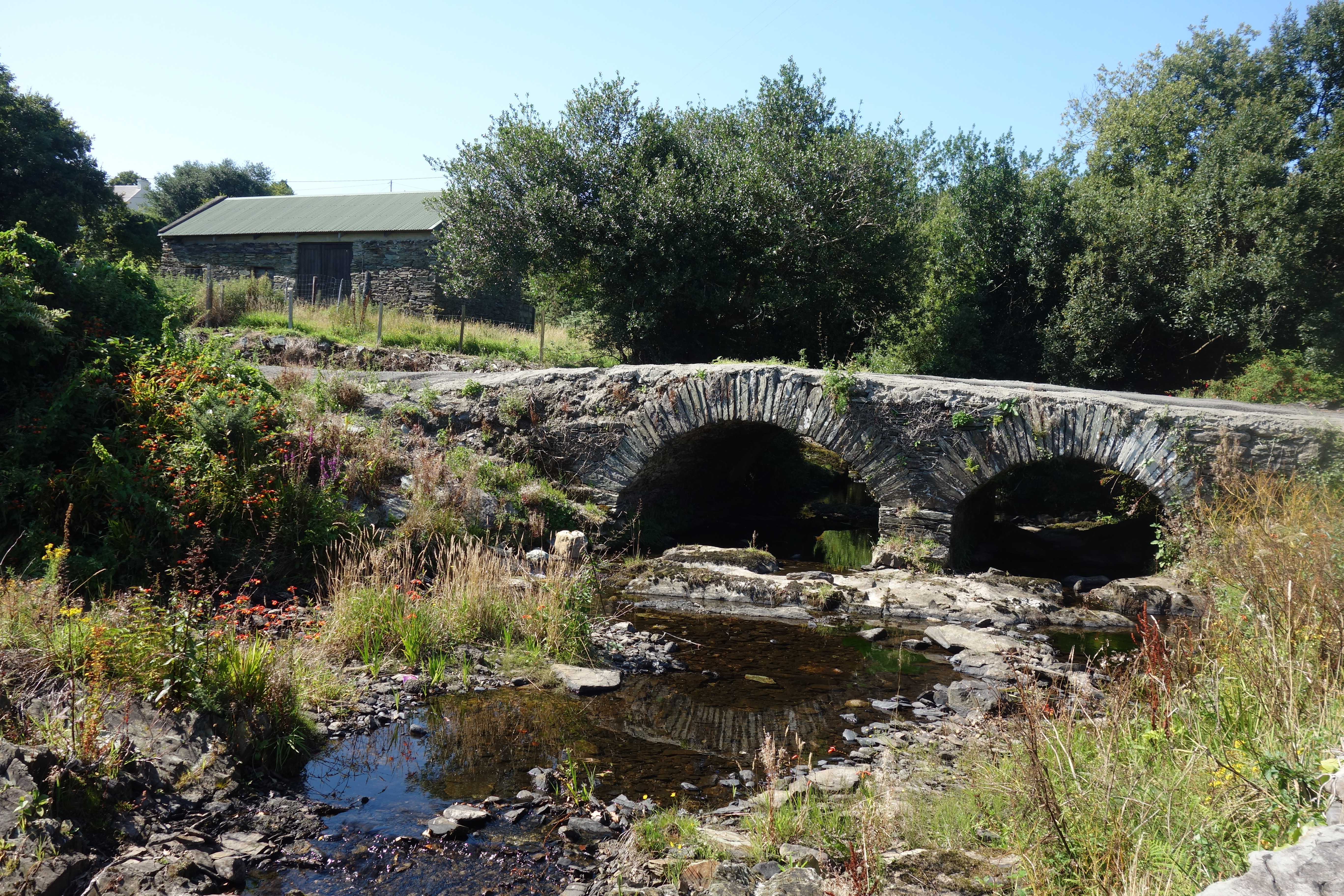 Van de kerk van Wontergem gaat het naar deze van Grammene. Het pad is hier echter nog wat mooier. Zo passeer je een oude stationsbrug, die door het Belgische leger werd opgeblazen en herbouwd werd door de Duitsers in 1942. Vandaag zie je nog de Duitse inscriptie. Ook is er een knuppelpad, dat weliswaar her en der al z’n beste tijd heeft gehad, met gammele planken tot gevolg. Even later verschijnt de kerk van Grammene. Hier wordt het grootste avontuur verzorgd door een zwarte kat die met ons mee in de kerk binnenglipte. Of dat dachten we toch. Het is ook best mogelijk dat we de kerkkat van Grammene buiten zette en zo het dorpje en omstreken in een periode van tegenslag hebben ondergedompeld…