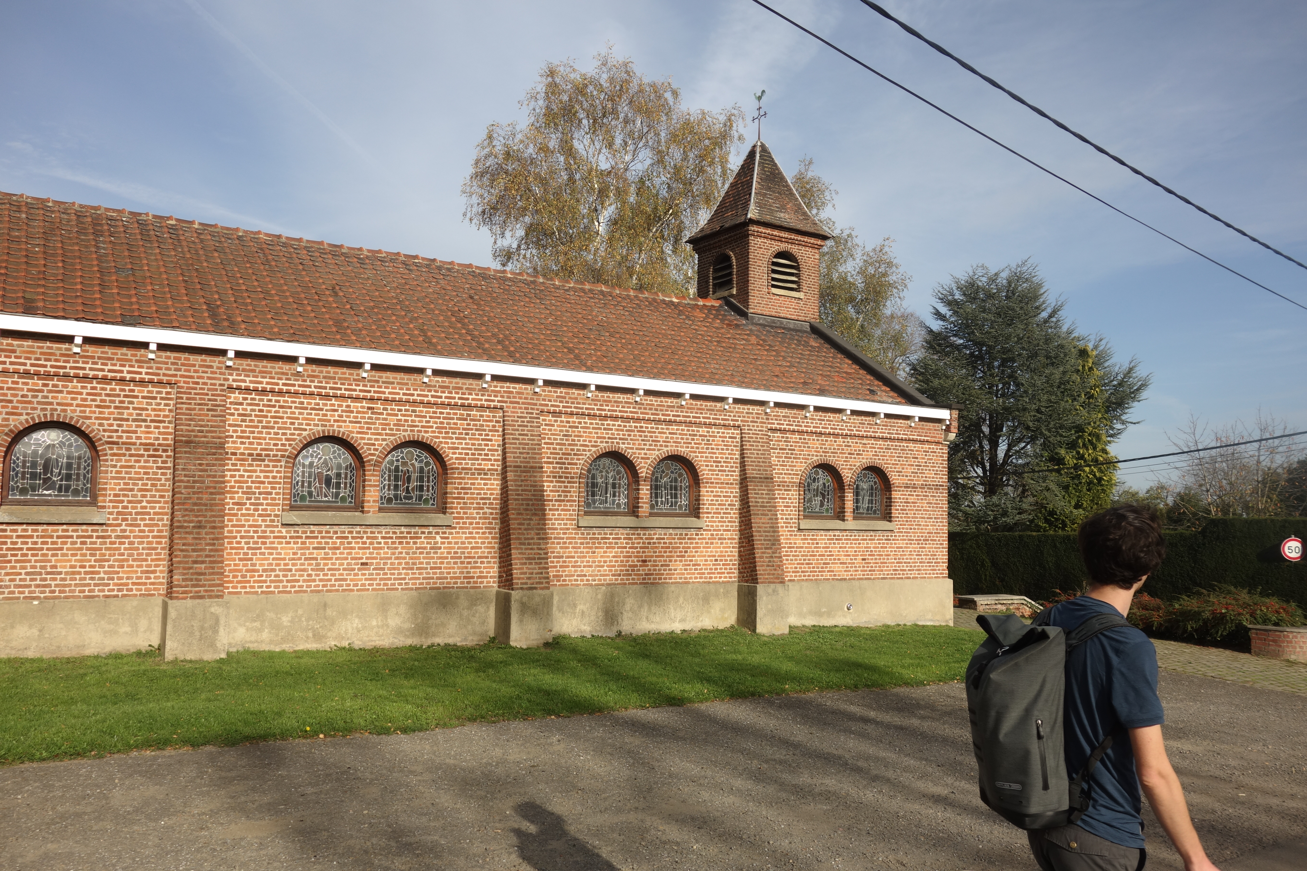 Deze derde etappe begon aan het kasteel van Coloma, in iets andere weersomstandigheden. Het was wat grauwer, maar gelukkig zou de regen zich beperken tot een beetje gemiezer bij aanvang. Anders dan de vorige keer, waar het begin door wat saaiere landbouwlandschappen ging, was er meteen een mooi stukje langs een vijver. Daarna volgde een residentieel stuk met een passage langs Kasteel Nieuwenhove. Het voormalige Kasteel Nieuwenhove, ook bekend als het Kasteel van Muller, was oorspronkelijk een leen van het Hof van Gaasbeek en gaat terug tot de 11e eeuw. Na verwoesting tijdens de godsdiensttroebelen werd het in 1608 heropgebouwd en bleef het nadien in handen van diverse adellijke families. Vandaag resteert een deels omgracht landhuis in traditionele bak- en zandsteenstijl uit de 17e eeuw, herkenbaar aan de trapgevel en hardstenen omlijstingen. Het is helaas slechts een klein beetje te zien vanaf de straatkant, door de poort.