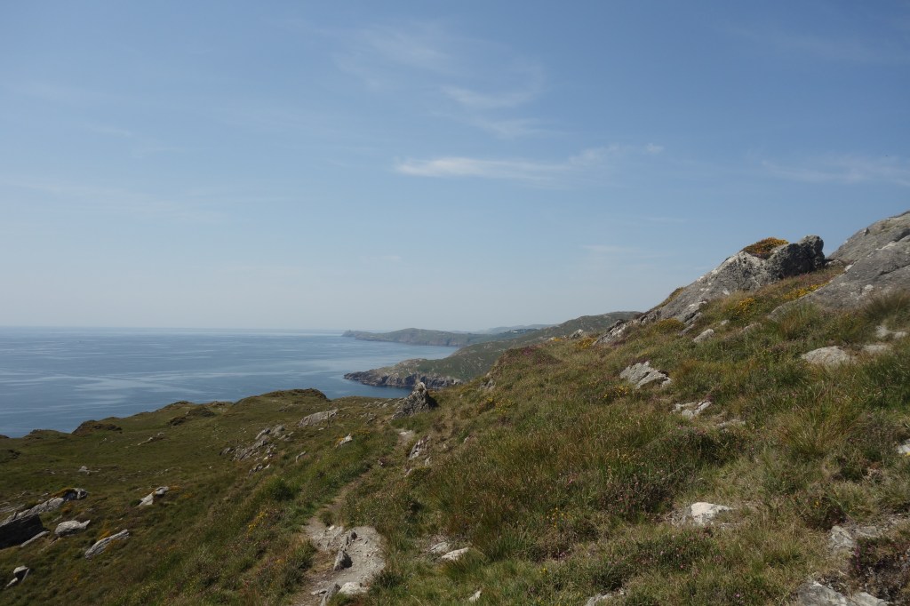 Maar eens op het pad was het van in het begin wel volledig raak. Een rotsig padje, af en toe afgewisseld met zand- of kiezelstrand, bood de mooiste uitzichten over de kustlijn die hier best nog grillig was. We waren net samen vertrokken met vijf Deense vrouwen die een groot stuk van de wandeling jojo met ons speelden.