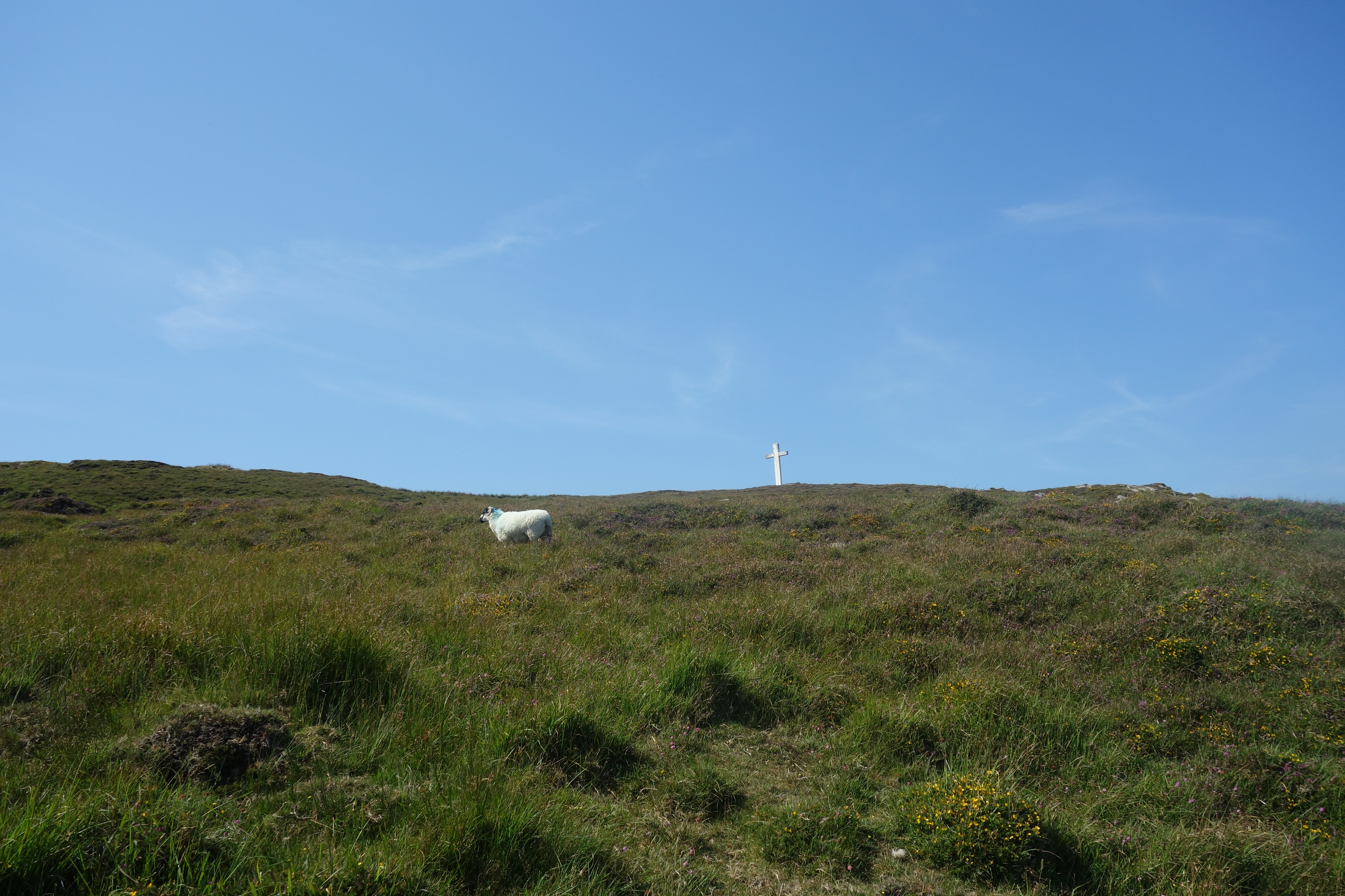Na Bølshavn waren er nog 6,2 kilometers te gaan. Maar dit waren zeker niet de minste. Het kustpad was prachtig met af en toe wat heide. Onderweg kwamen we ook voorbij de Heilige Vrouw, zogezegd een moeder die haar en haar kroost transformeerde in steen. Het is een gebruik om haar te vragen een voorspoedige reis te verzekeren. Uiteraard deden we dat met de nodige nederige buigingen erbij.