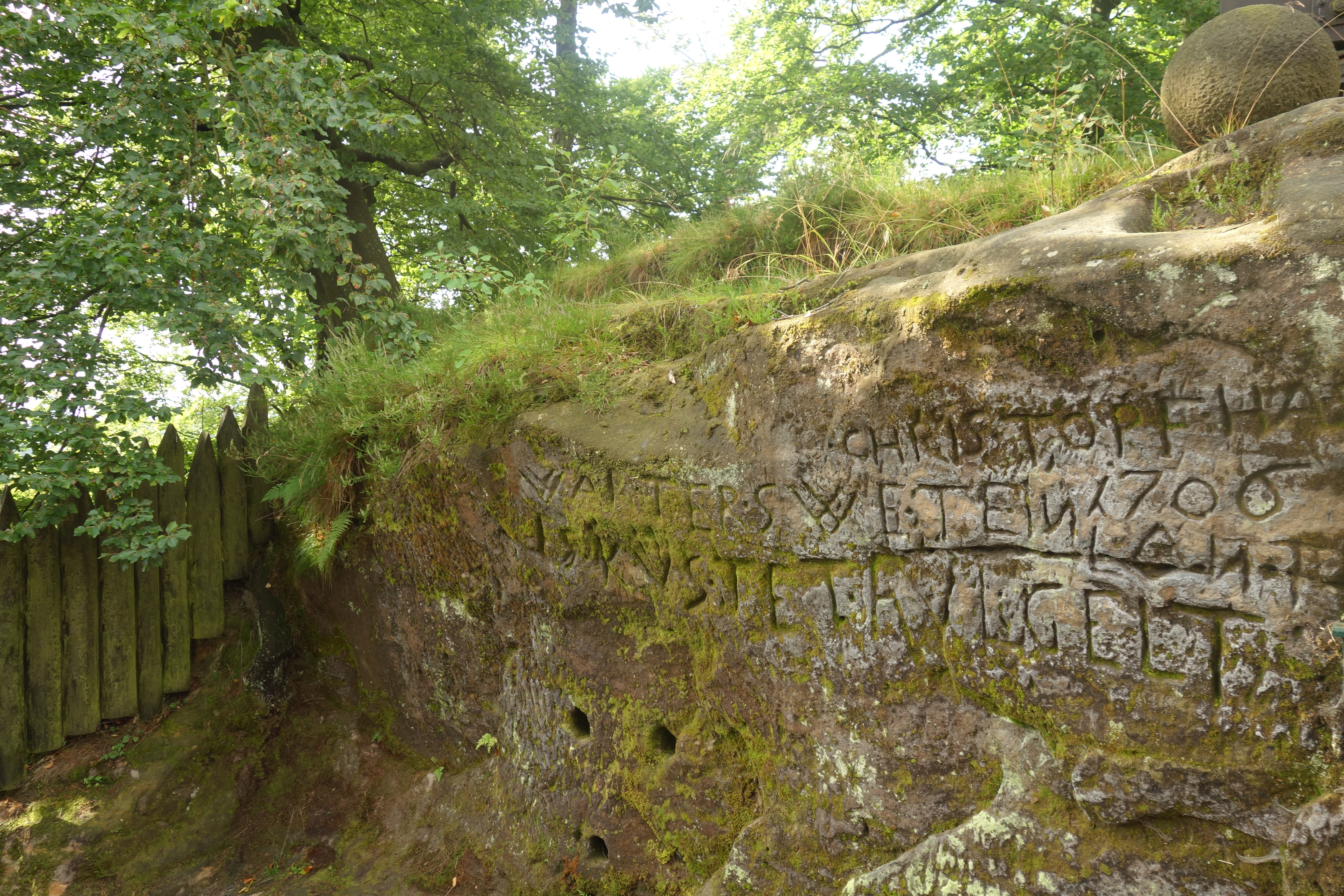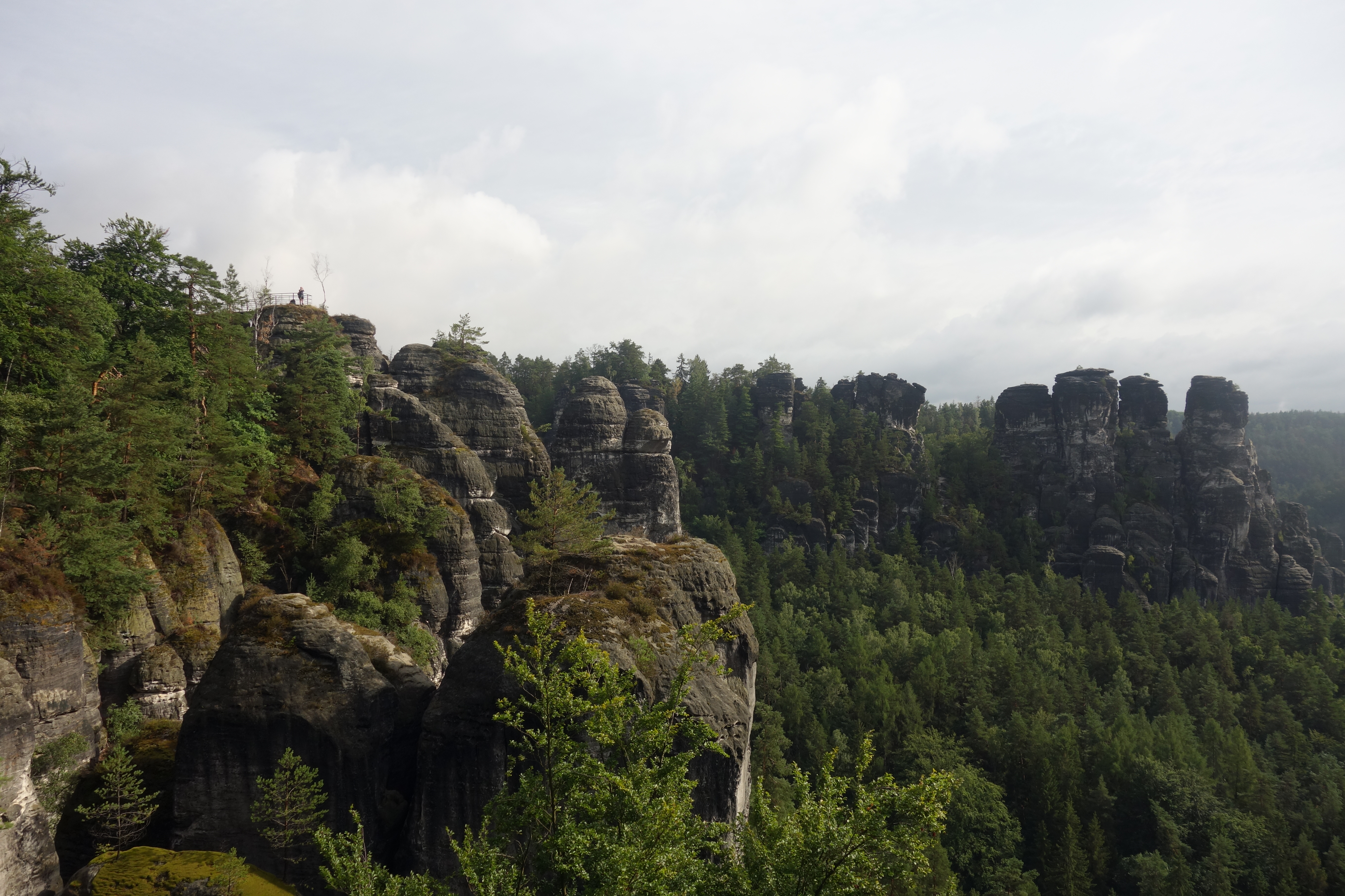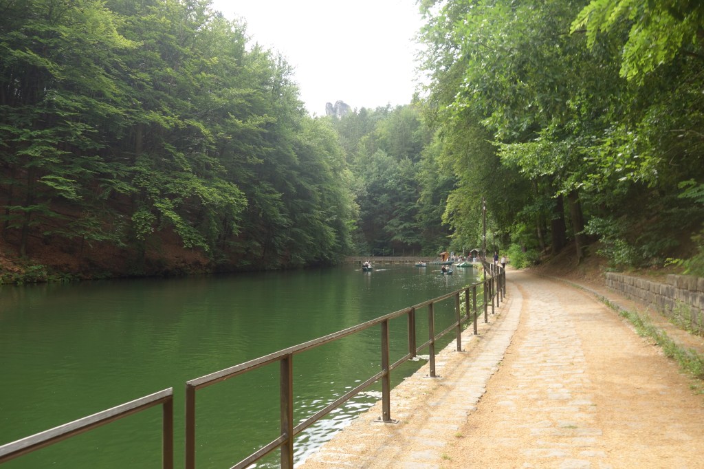 Na de beide kleine maar meer dan terechte zijsprongen gingen we opnieuw langs Bastei en zo wat weg van het toeristengevoel, tot aan de Steinerne Tisch, waar de Duitse uitleg vaagweg iets zei over keurvorsten en jachttradities. De collectie stenen kon op een ander moment zeker een geschikte picknickplek aanbieden, maar we waren nog maar net op pad.