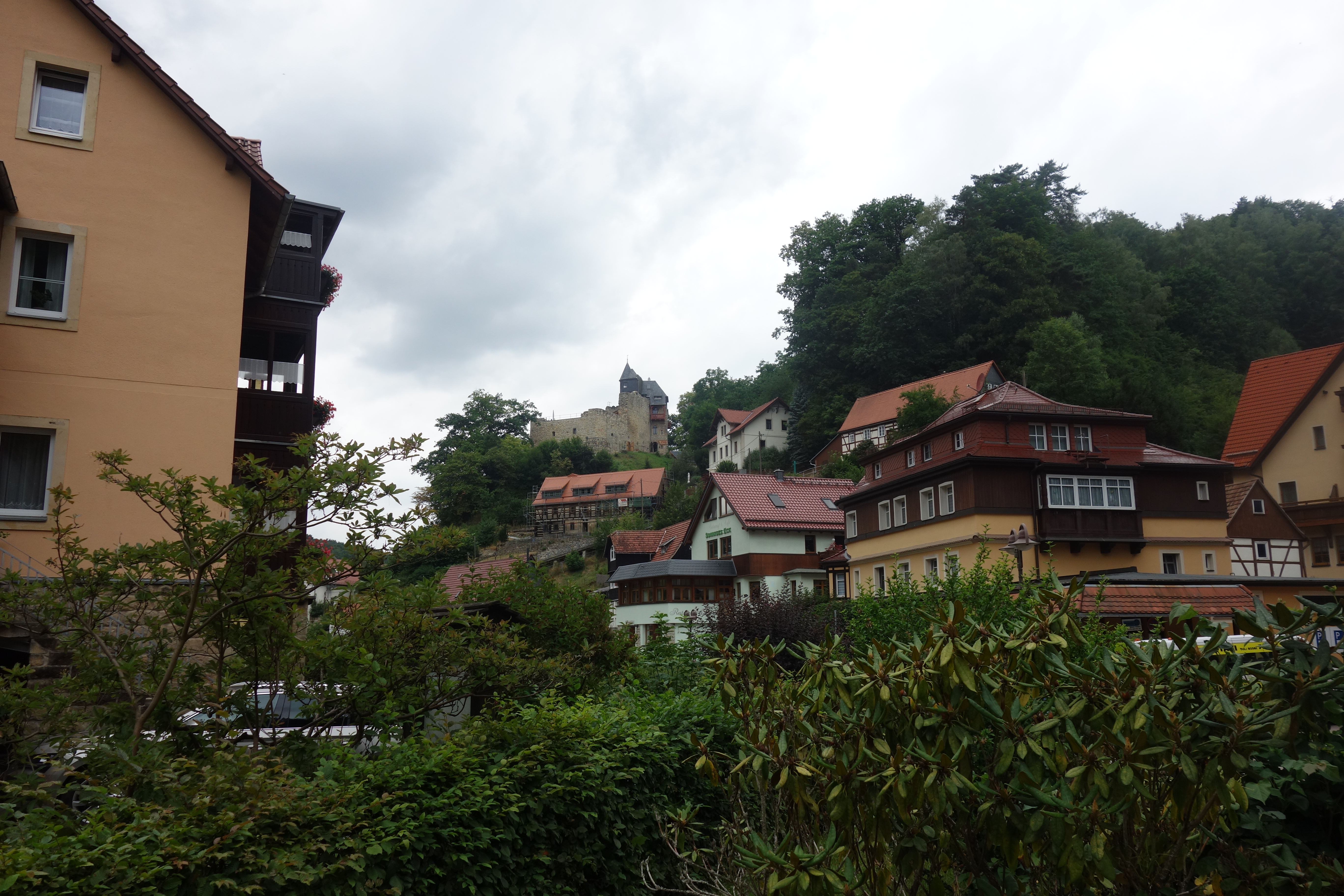 Nu we toch opnieuw aan de brug waren, gingen we nog een klein beetje verder richting ons beginpunt, waar de restanten van een opzienbarend kasteel staan. De ruïne van Neurathen was te bezoeken via een wirwar aan stalen bruggen, sommige met wat meer afgrond dan andere. In ieder geval was het een kort maar leuk bezoek aan een knap staaltje kasteelarchitectuur, ingebed in de rotsen.