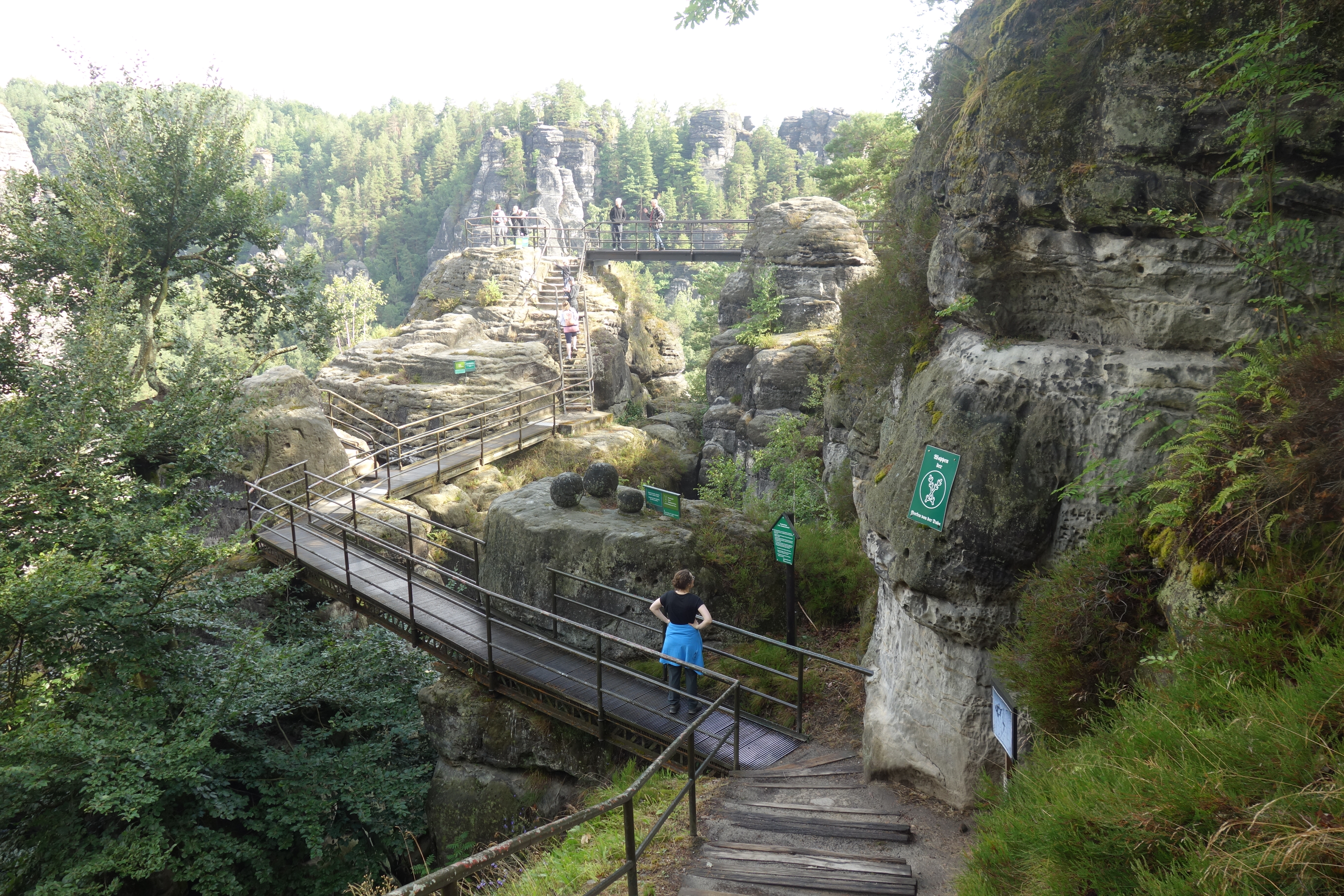 Vandaag stonden enkele vooraf aangekondigde hoogtepunten op het menu. Onze ervaring gisteren leerde ons dat het dus opletten was voor de gemotiveerde dagtoerist. Dat was zeker het geval voor de iconische Basteibrug. En dus was het een zaak om vroeg genoeg te vertrekken. Na een vroeg ontbijt konden we ze om iets na acht Rathen achter ons laten.