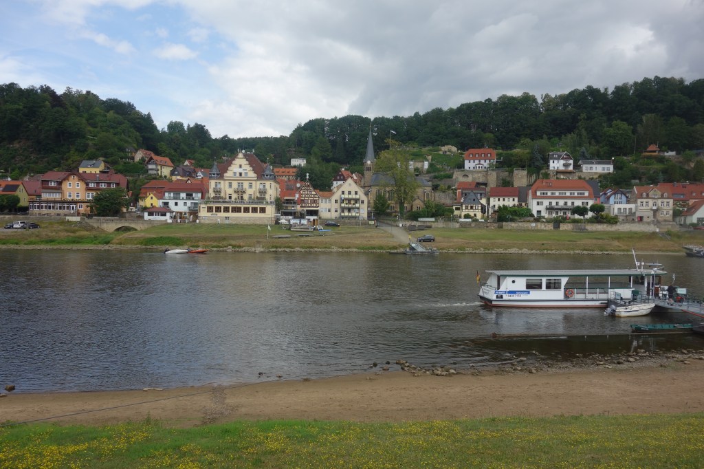 Een kort stukje asfaltering bracht ons naar het gezellige plekje Stadt Wehlen. Ook hier konden we langs restanten van een burcht wandelen. Al was deze iets minder goed bewaard en waren ligging en uitzicht wat minder spectaculair. Na een korte pauze op het marktpleintje van Wehlen namen we de ferry. Anders dan gedacht was onze gastenkaart van het hotel niet geldig op deze ferry, wat nogal onvriendelijk door de bestuurder (met twee “neins”) werd duidelijk gemaakt. Zo betaalden we elks €1,80 voor een tochtje van maximum 30 meter.