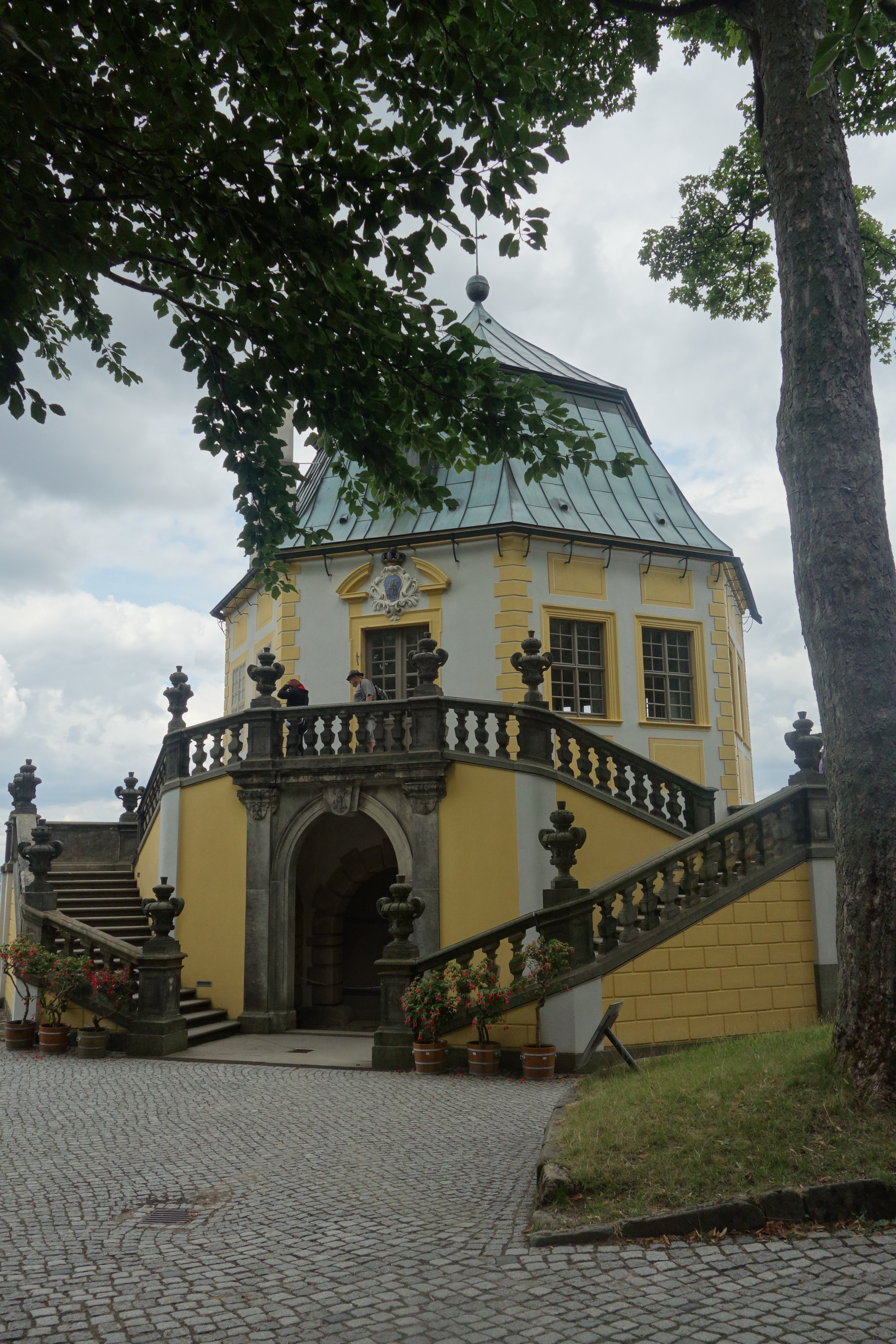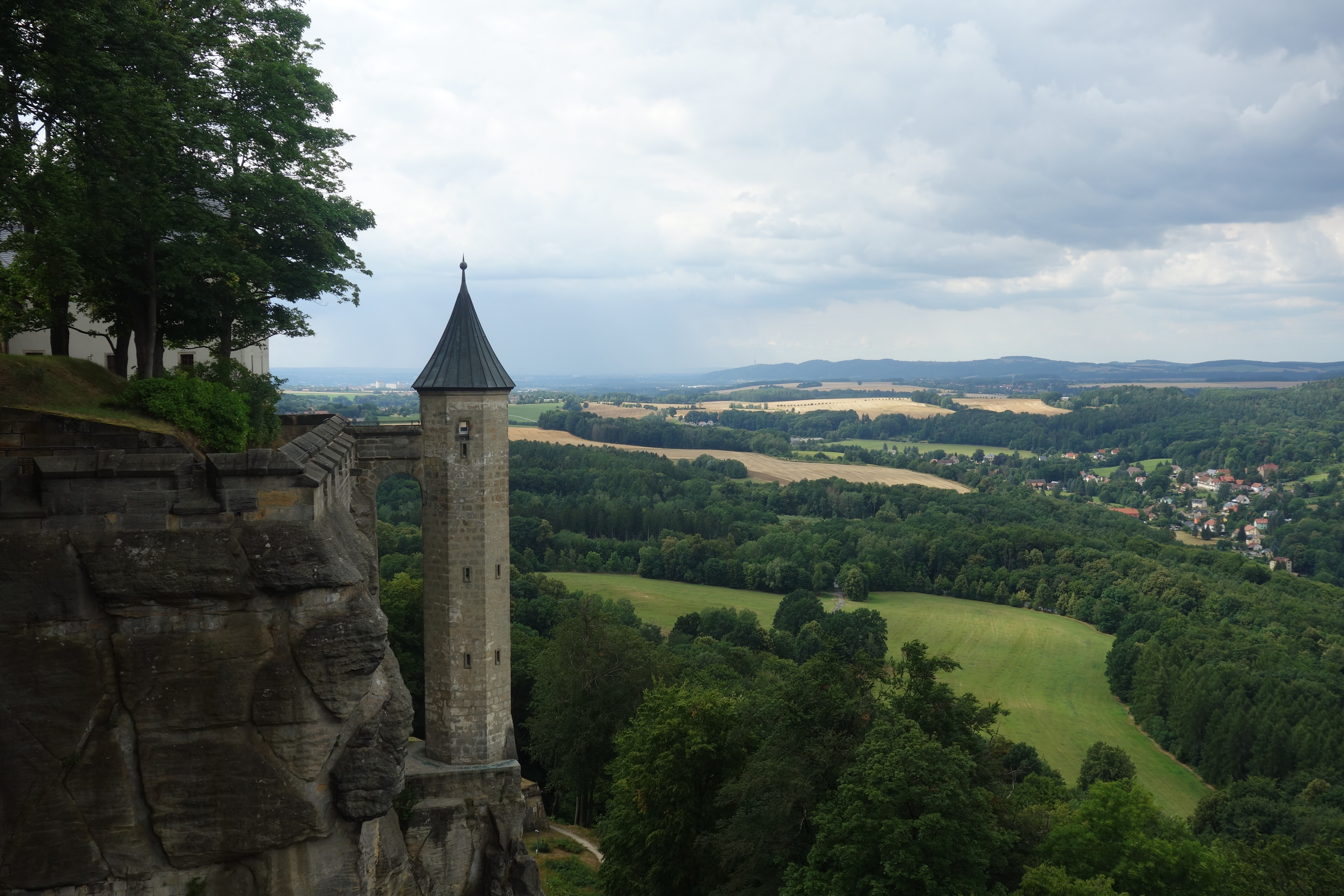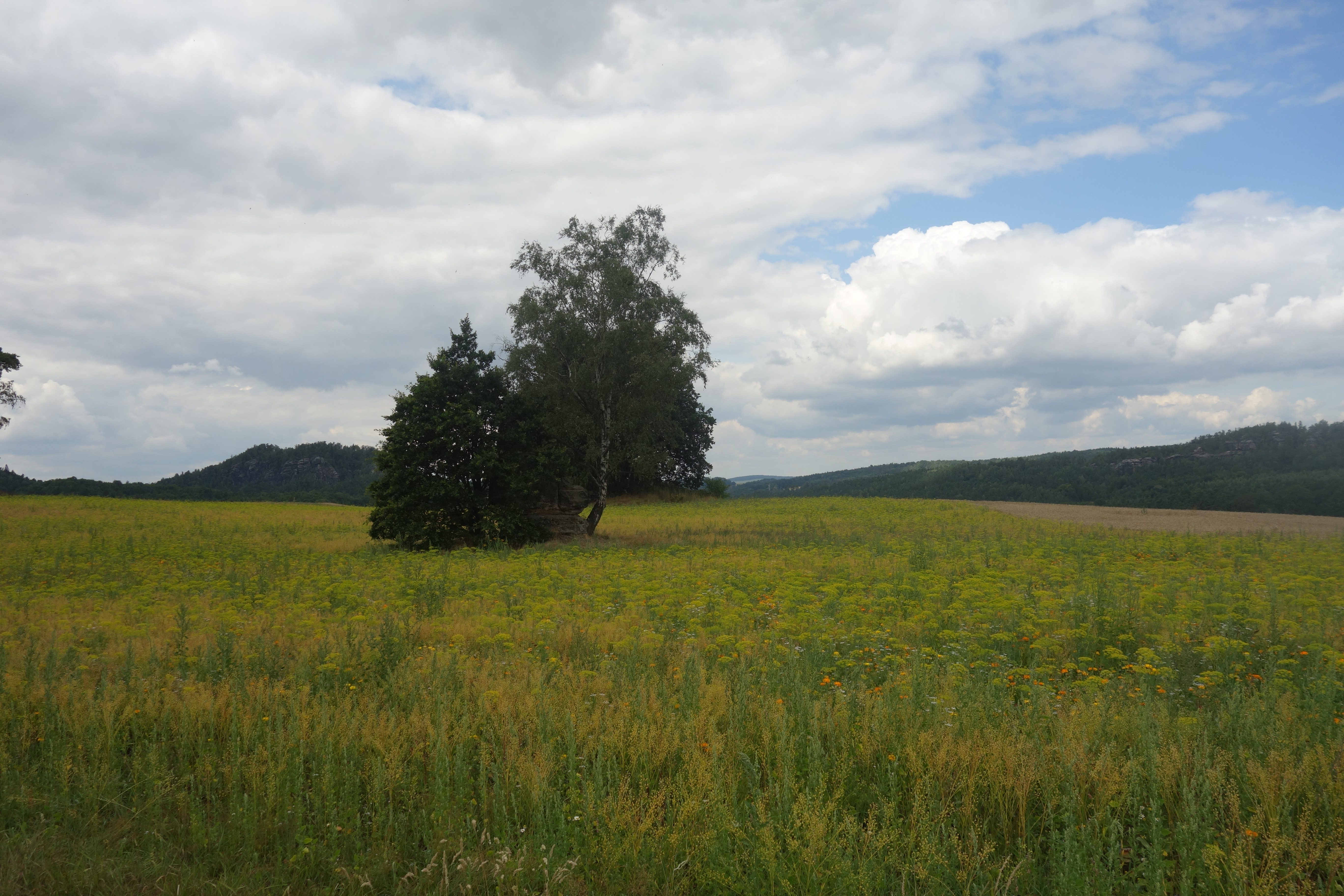 Daarna volgde een tweede stukje veldweg, met geurige bloemen, en nog een bospadje dat langs een klein mausoleum en een uitkijkpunt leidde. Het kleine dorpje Thurnsdorf werd nog doorkruist op weg naar ons eindbestemming van de dag, Königstein en de vestingsburcht die we al meerdere malen in de verte hadden kunnen observeren.