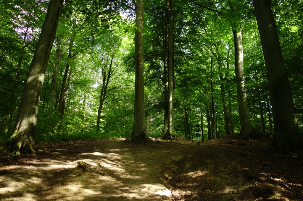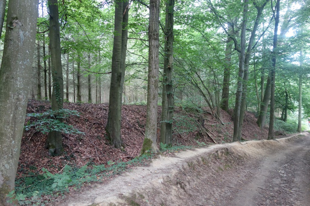Na een lunch aan een vijvertje in de abdij, ging het verder op de GRP. Via een kasseiweg met een pittig stijgingspercentage ging het al snel een groot bosgebied in, te beginnen met het Bois de l’Ermitage en dat gaat over in het Bois de Sainte Catherine. Na wat bochtenwerk via de betere bospaden passeerden we langs een beekje, een zogenaamde Ry, de Ry Pirot.